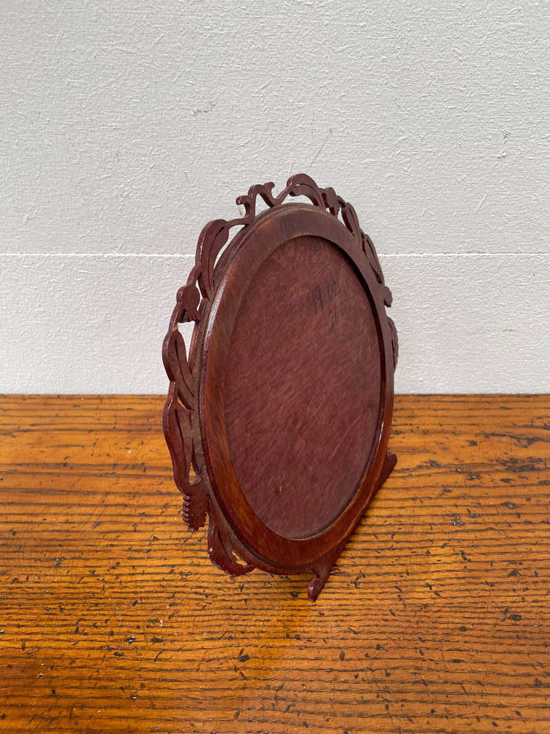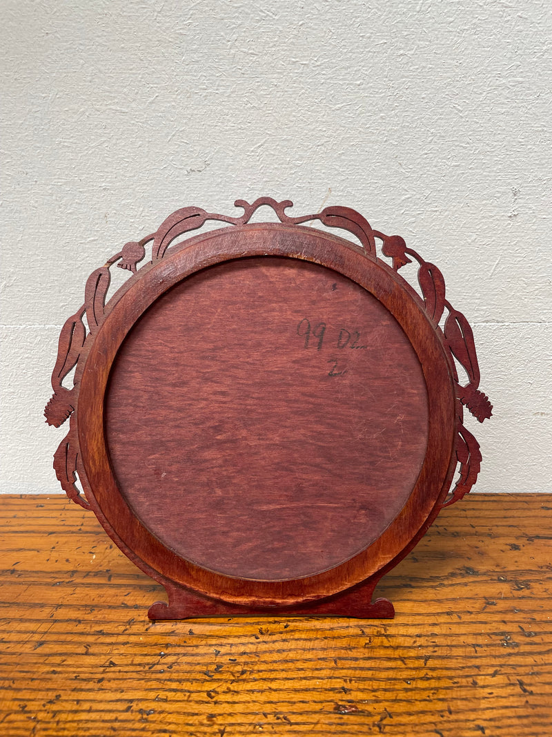 Vintage Australian Timber Round Picture Frame Featuring Carved Flowering Gum Leaves
