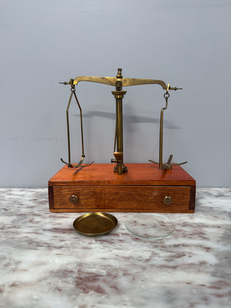 Vintage brass balance scale set weights included. Useful & decorative item. In good original condition. Please see photos as they form part of the description.