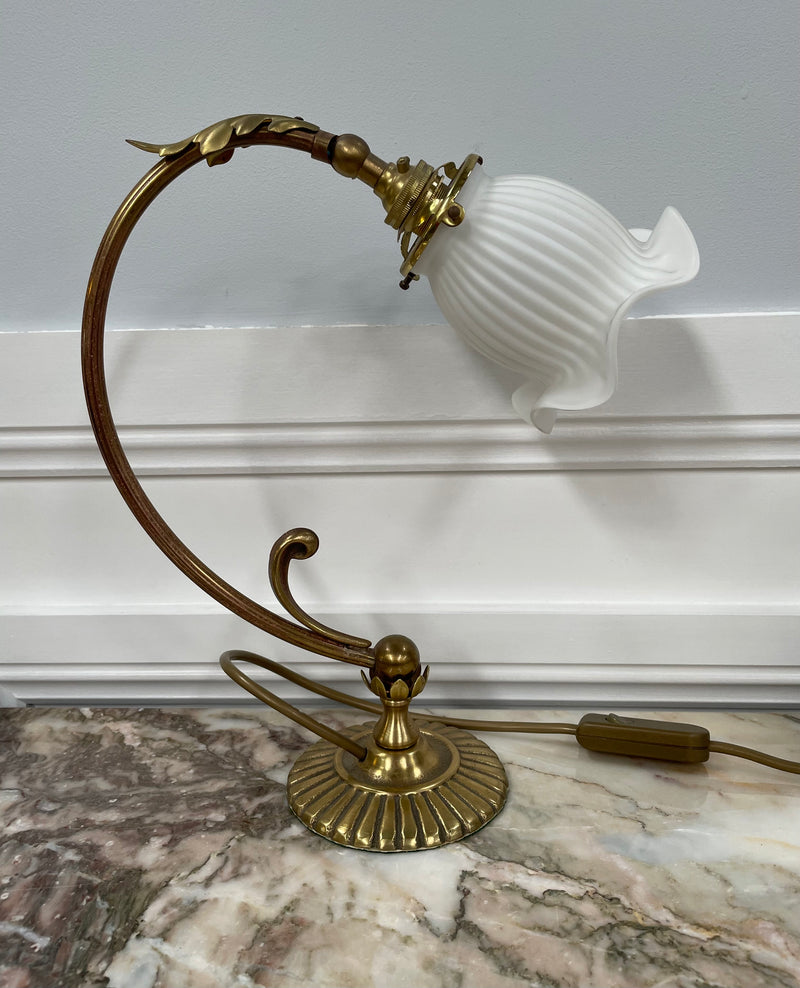 Vintage Brass & Milk Glass Shade Table/Desk Lamp