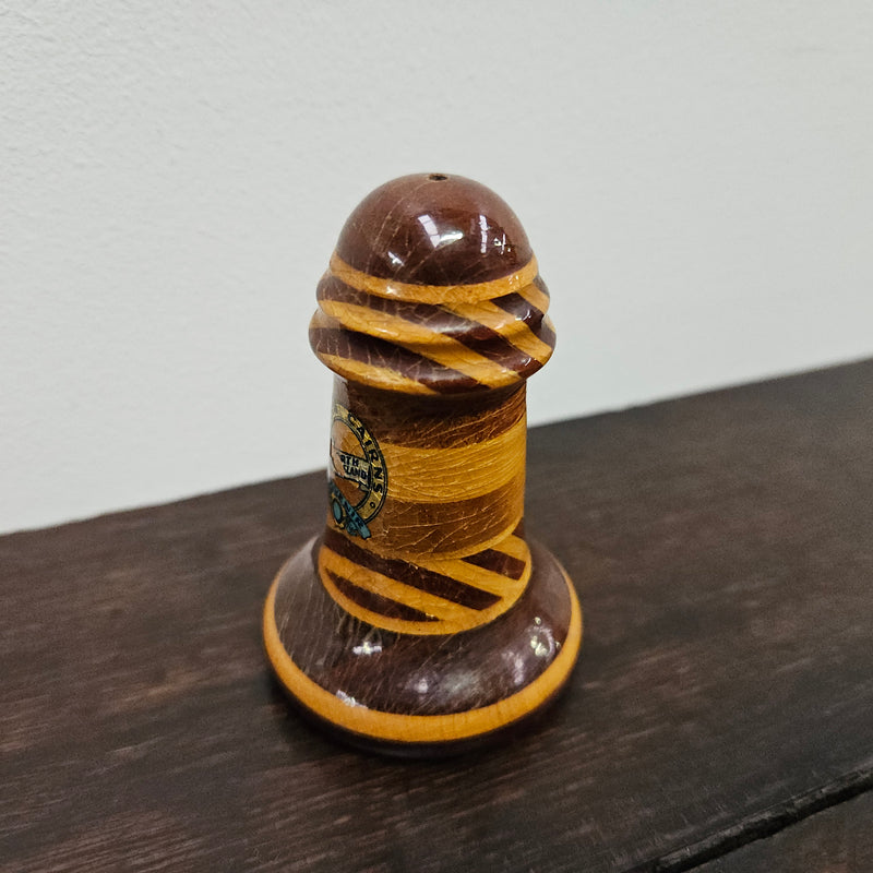 Carved wooden souvenir treen salt shaker. "from Cairns" In good condition. Please see photos as they form part of the description,.