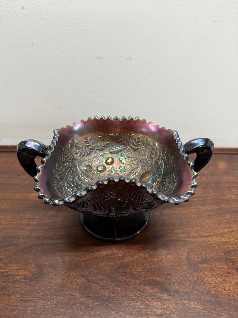 Stunning vintage carnival glass double handled bowl with Northwood fruits and berries. It is in good original condition. Please see photos as they form part of the description.