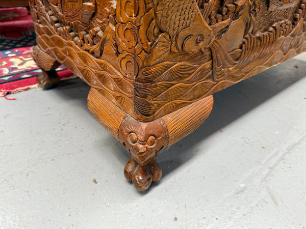 Vintage Carved Camphorwood Chest On Four Lion Feet
