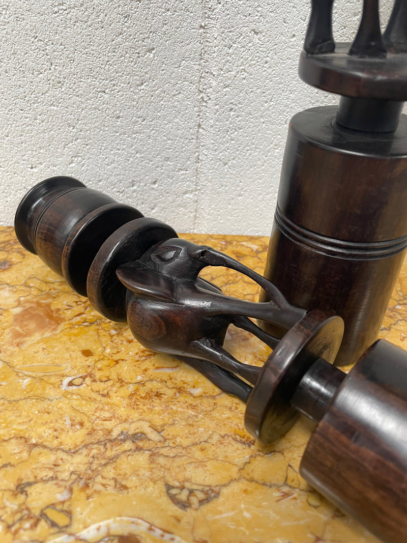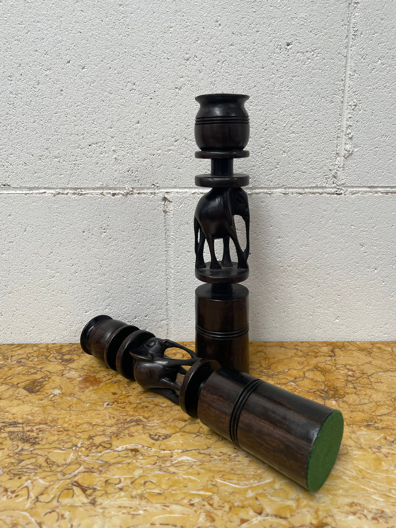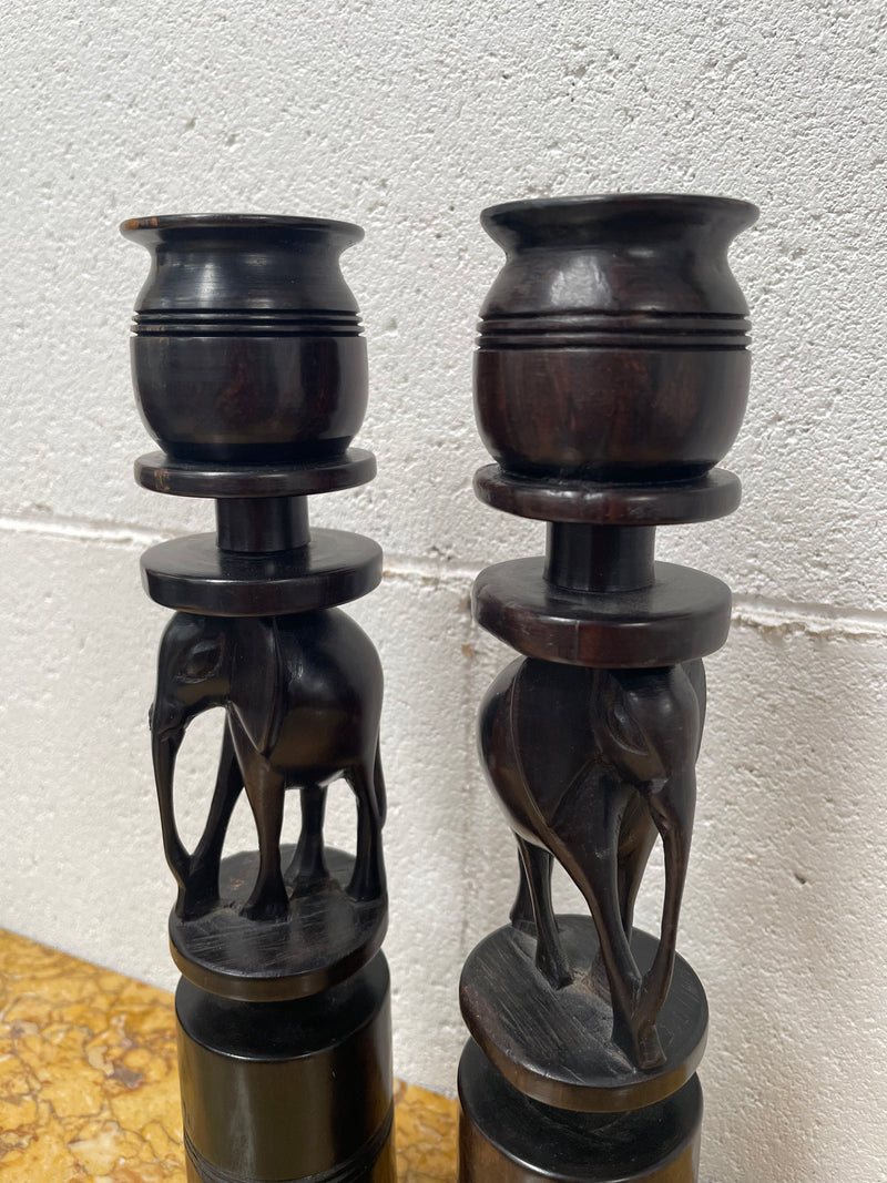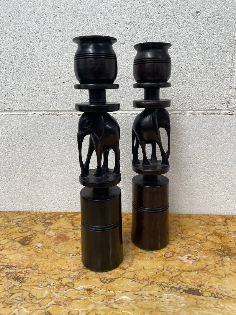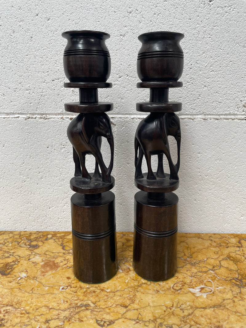 Attractive vintage carved elephant candle holders. In good condition. Please see photos as they form part of the description.27cm