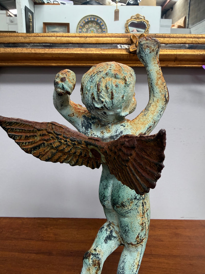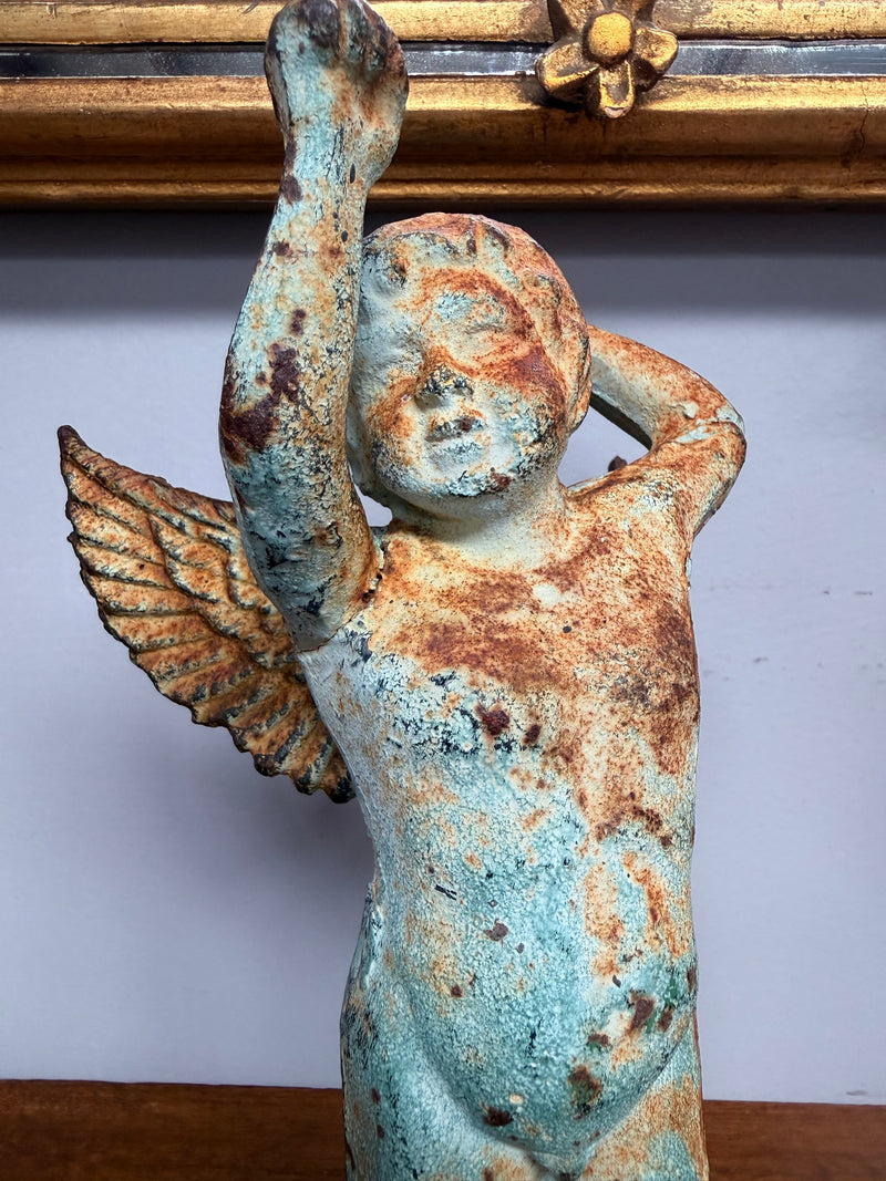 Interesting vintage cast iron great patina cherub figure, it is in good original condition. Please see photos as they form part of the description.