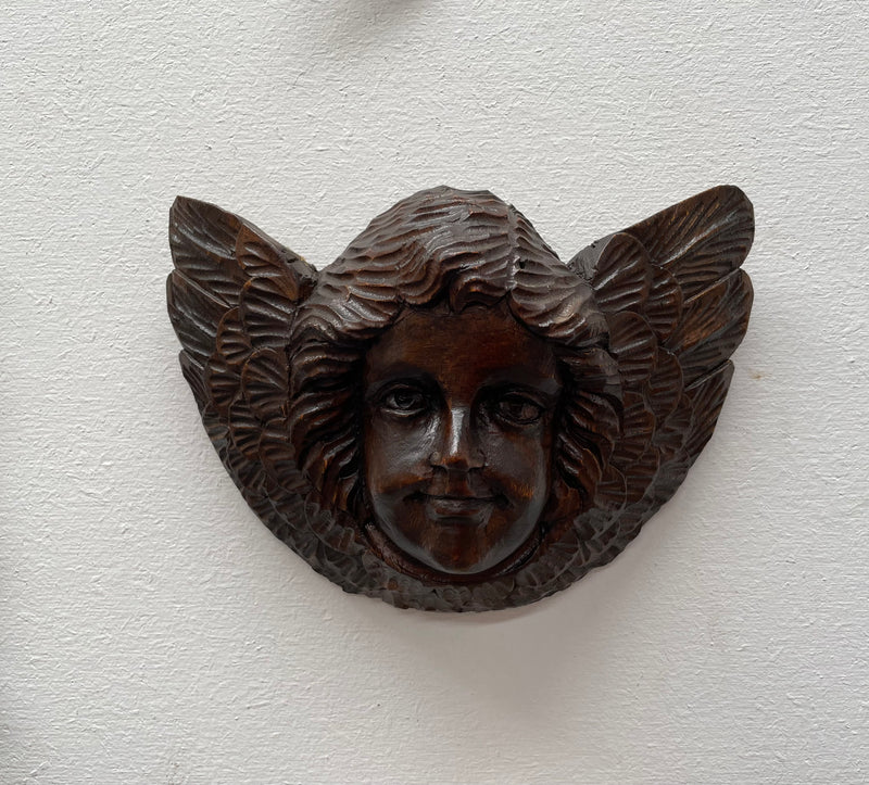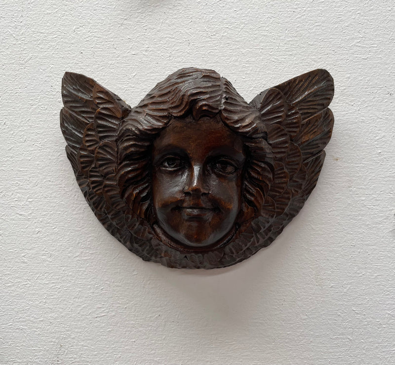 Hand carved vintage cherub figure wall plaque, it is in very good condition and ready to be hung. Please see photos as they form part of the description.