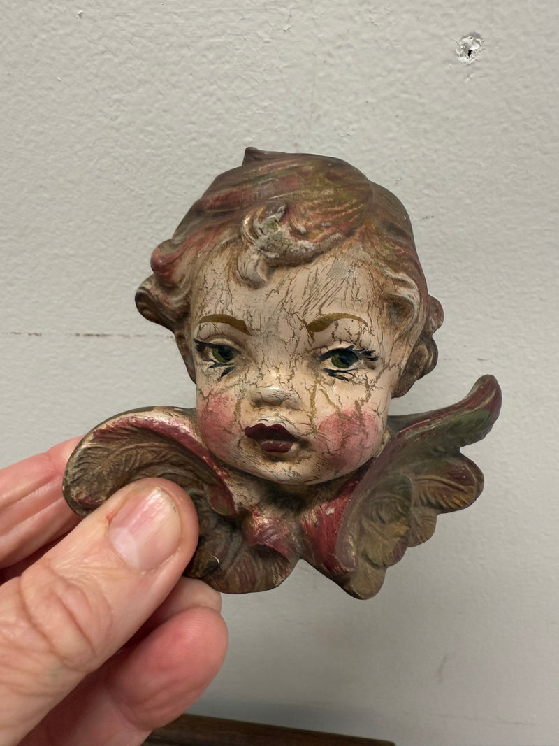 Lovely vintage cherub wall plaque with a cherub stamp to the back of the plaque. It is in good original condition. Please see photos as they form part of the description.