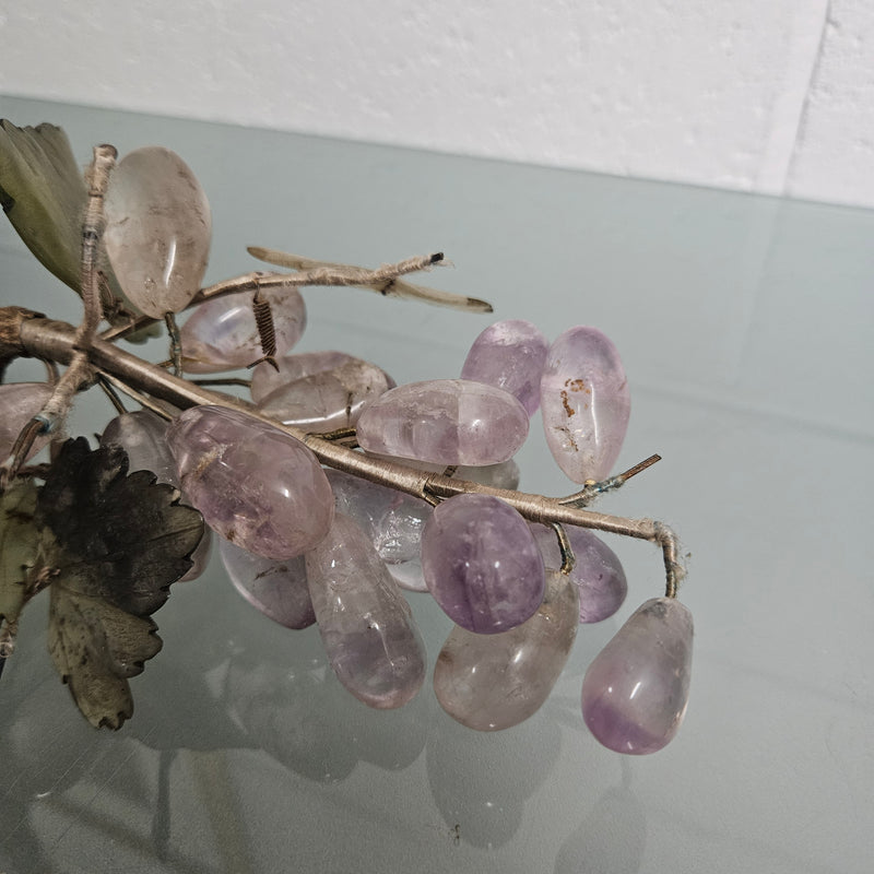 Vintage cluster of amethyst & jade grapes & leaves. In good original condition. Please see photos as they form part of the description.