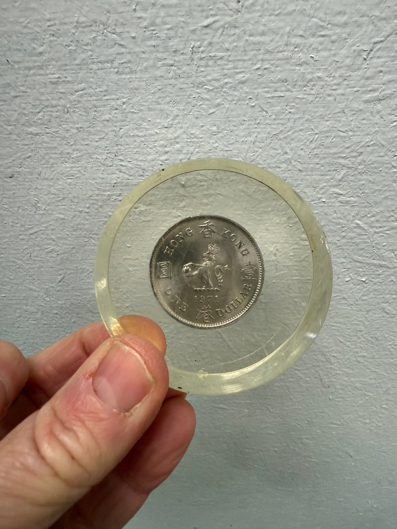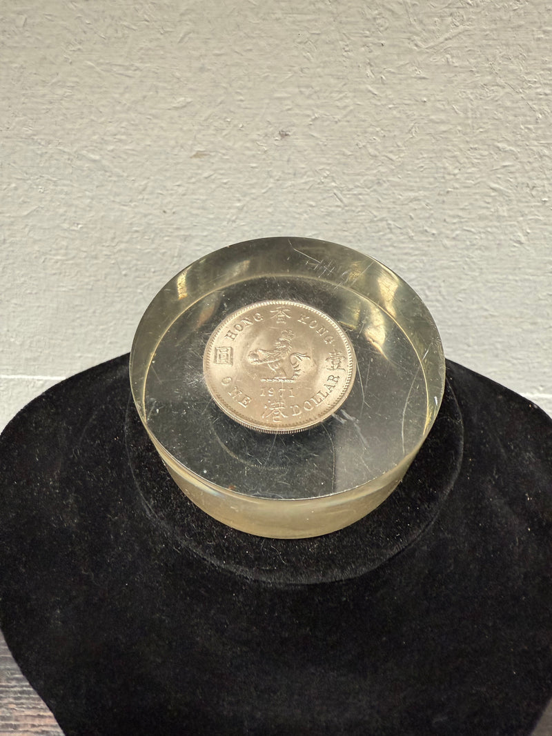 Vintage Hong Kong coin in Perspex paperweight. In good original condition. Please see photos as they form part of the description.