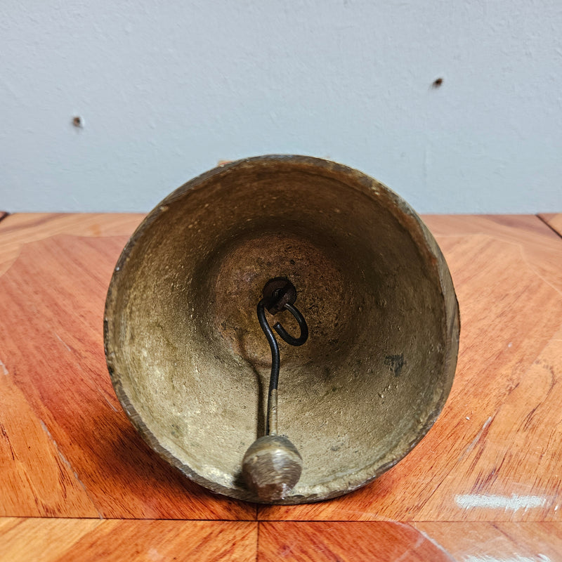 Vintage Cow Or Goat Brass Bell & Fringed Leather Strap