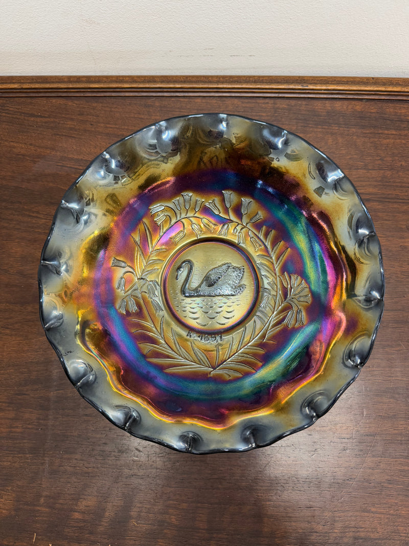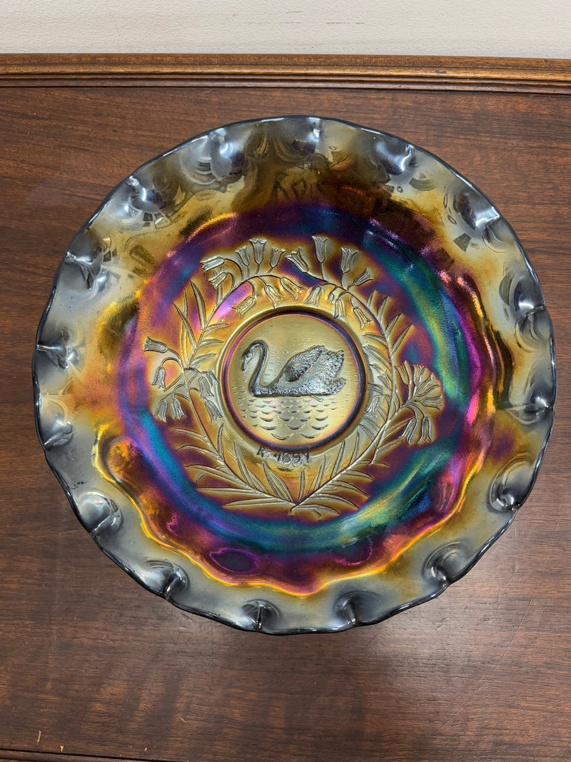 Vintage Crown Crystal Australian Carnival Glass Swan Master Bowl