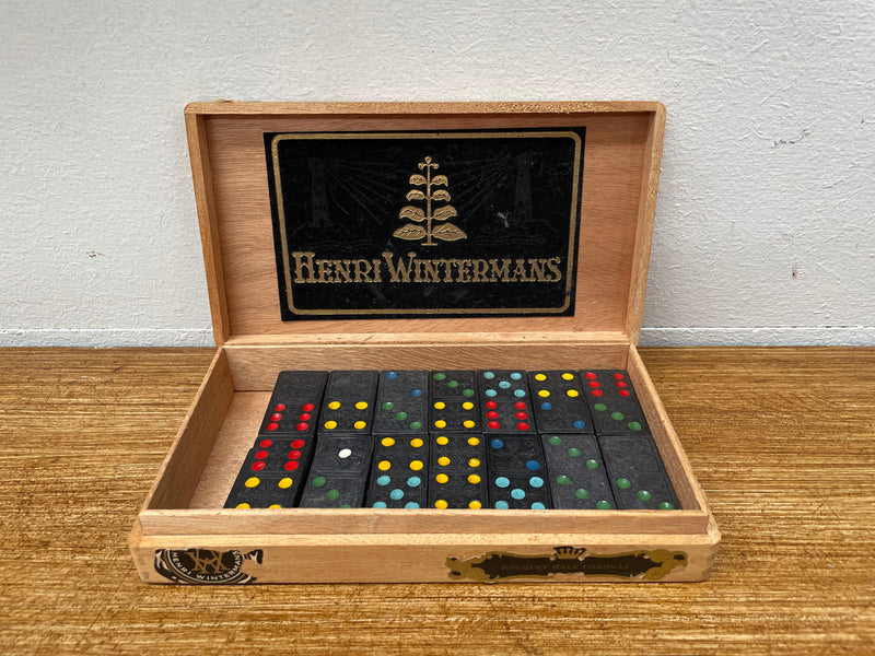 Vintage Dominos Set In Vintage Cigar Box