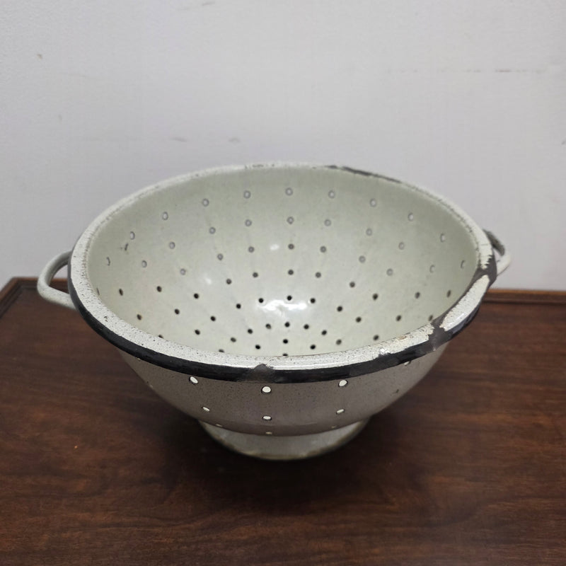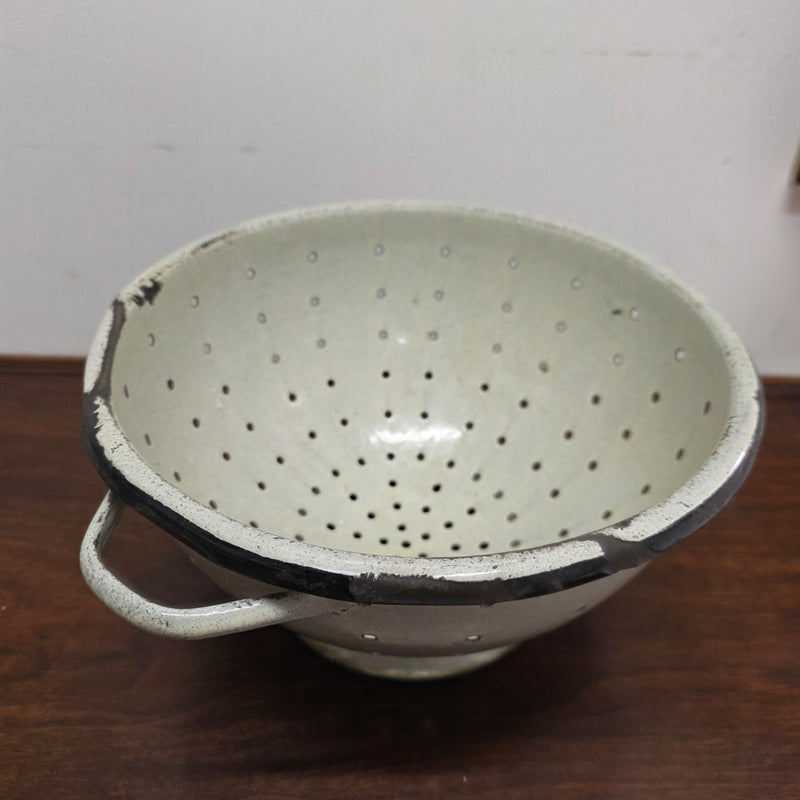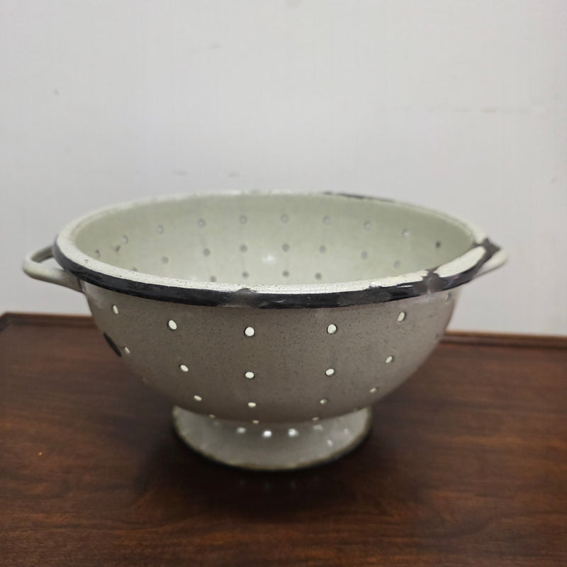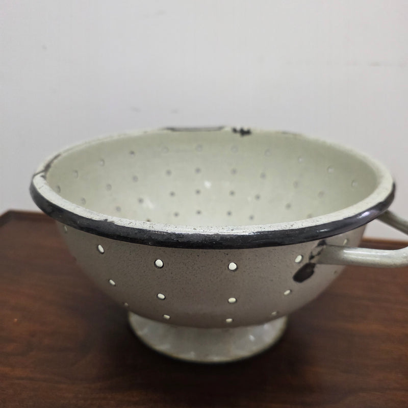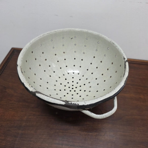 Vintage enamel collander with some chips and character marks. Please see photos as they form part of the description.