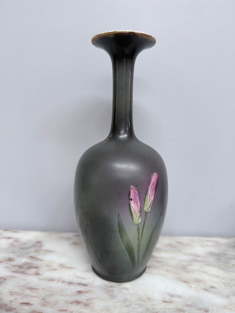 Stunning floral English hand painted vase with long neck, it is in good original condition and marked to the base. It has some crazing around the base and top. Please see photos as they form part of the description.