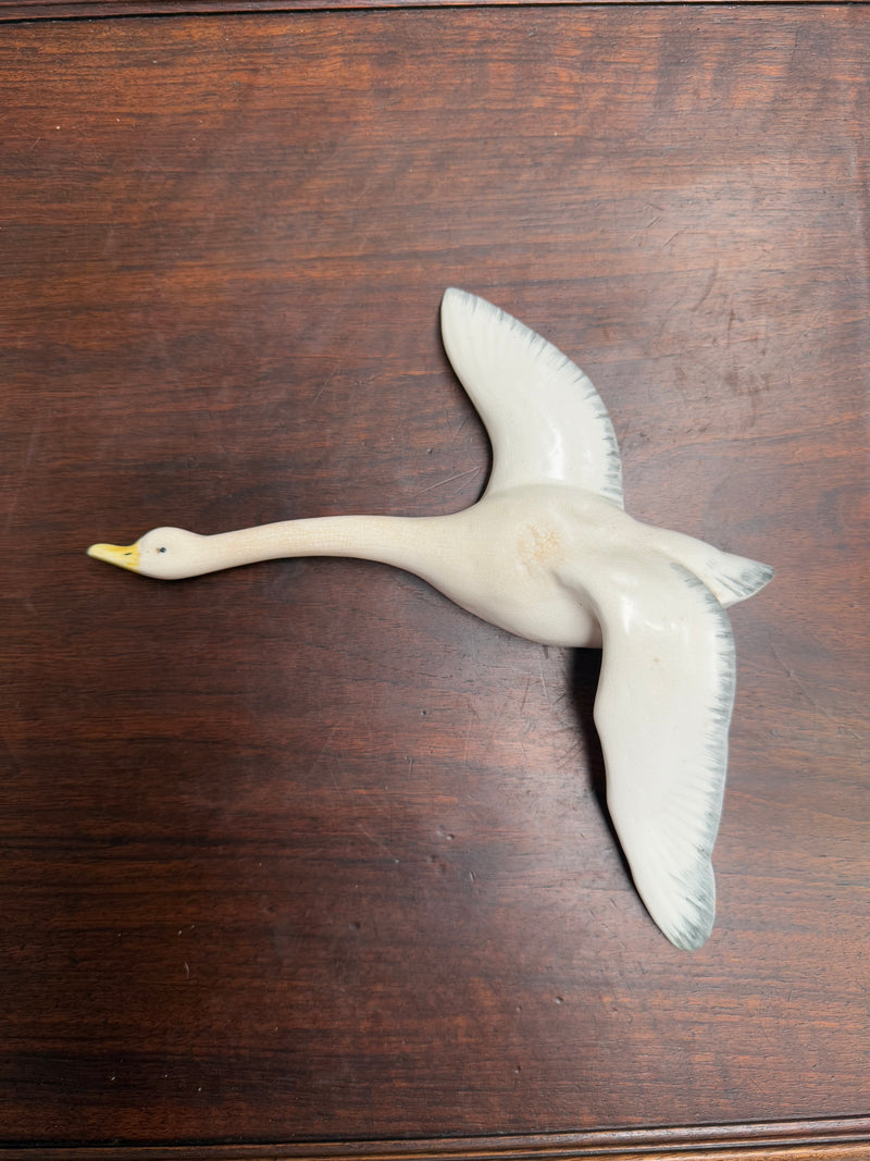 Lovely vintage English made wall hanging flying duck, it has some crazing due to age, otherwise in good original condition. Please see photos as they form part of the description.