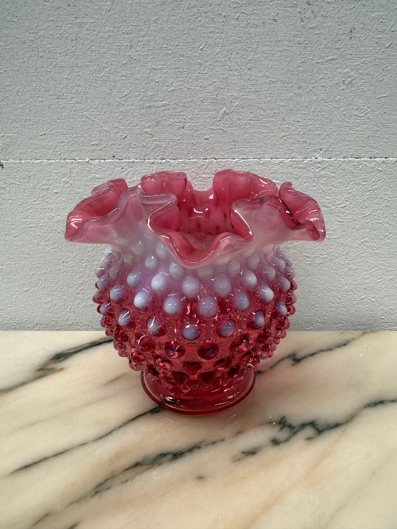 Vintage Fenton Cranberry & Opalescent Jar/Vase