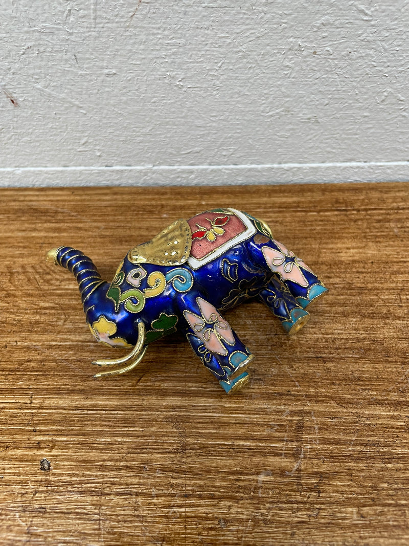 Vintage French cloisonne elephant figure with raised trunk. In good original condition. Please see photos as they form part of the description.