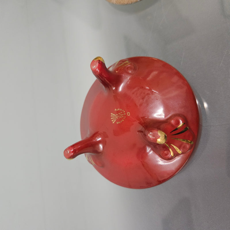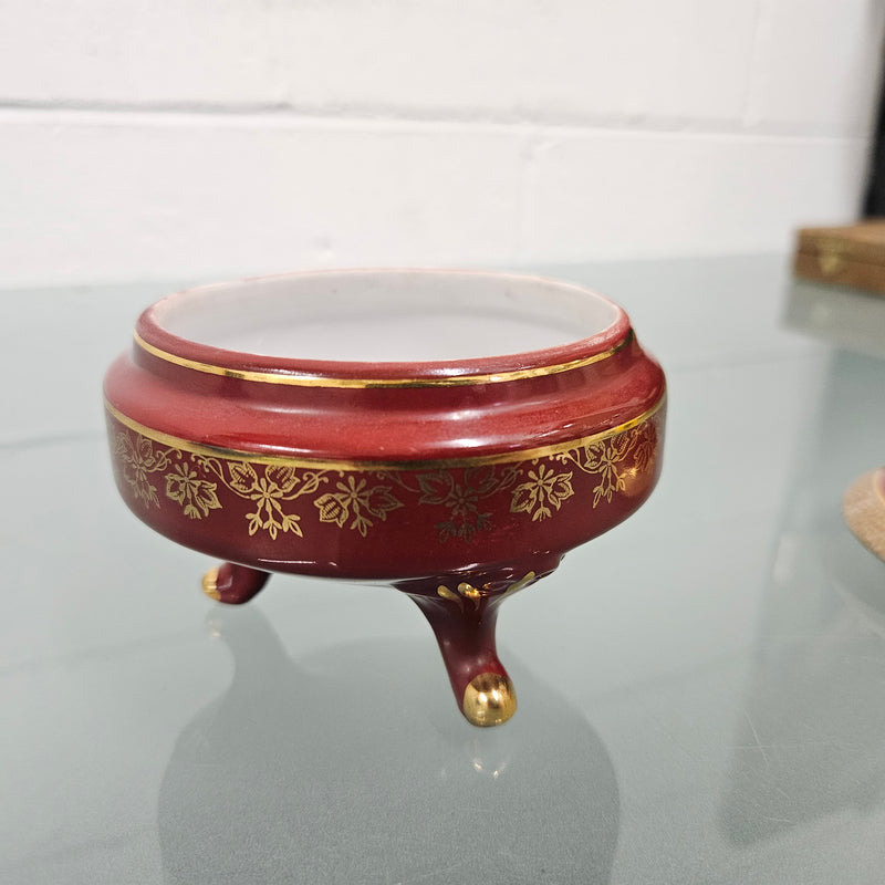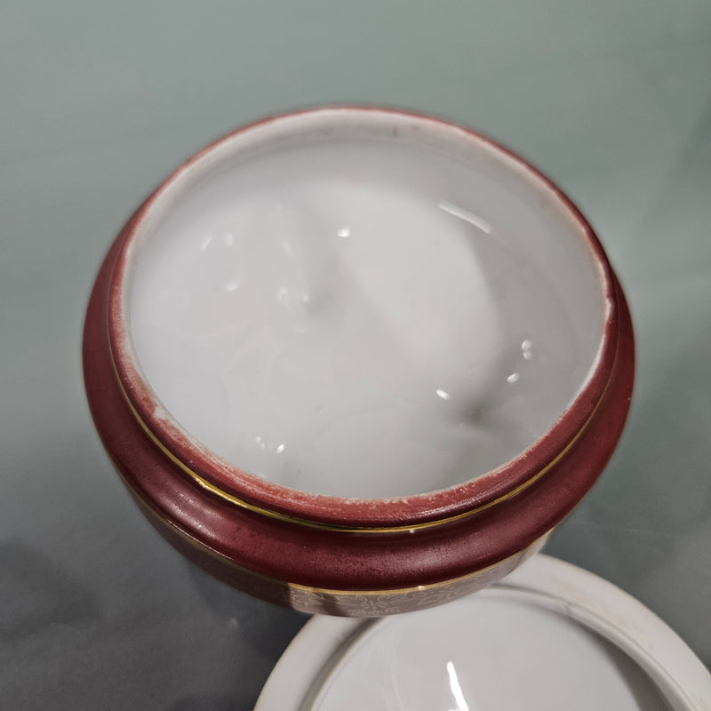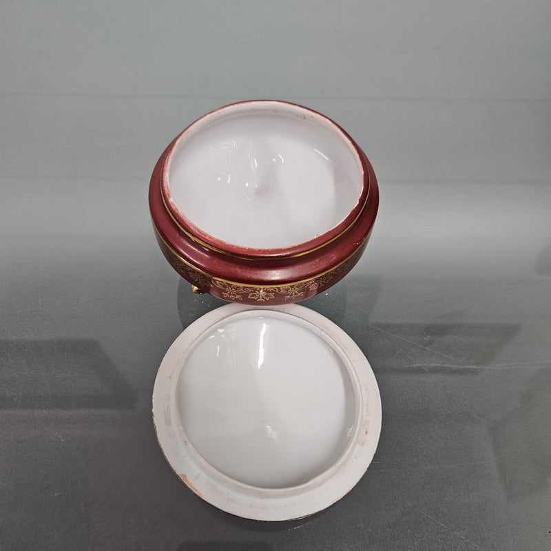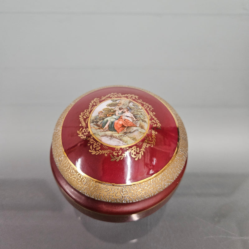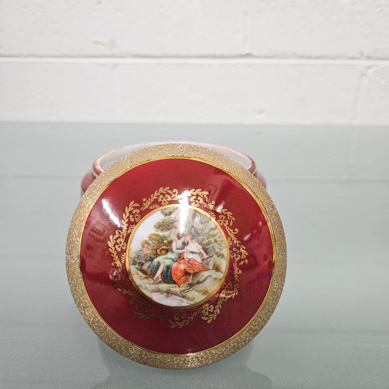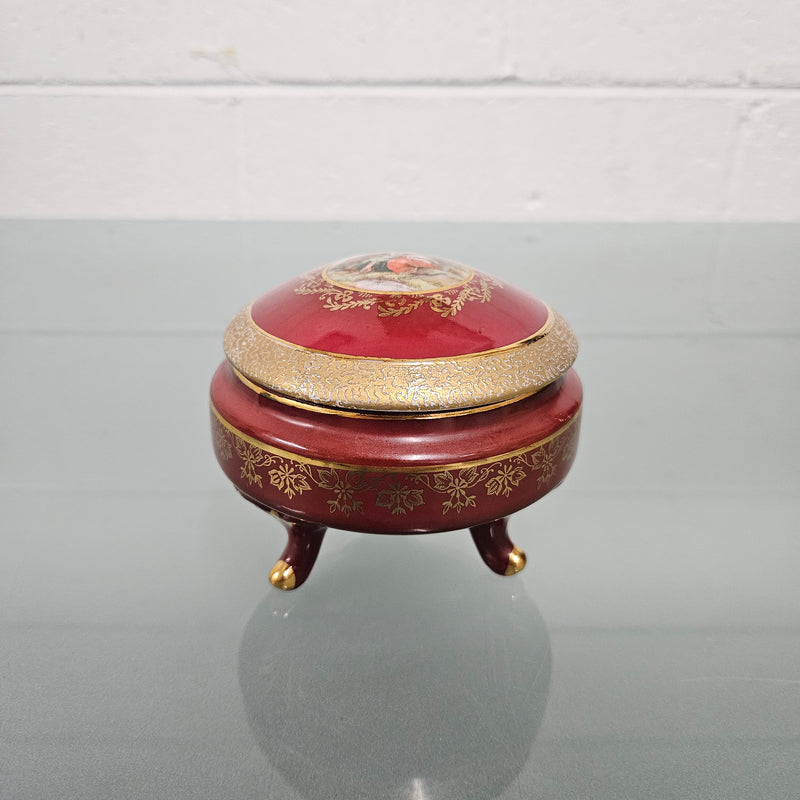 Charming vintage red and gold lidded ceramic trinket box. In good original condition. Please see photos as they form part of the description.