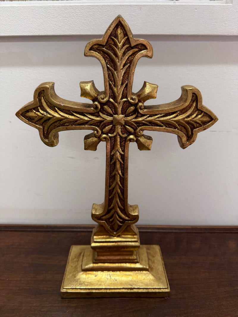 Decorative vintage gilt cross, it is in good original condition. Please see photos as they form part of the description.