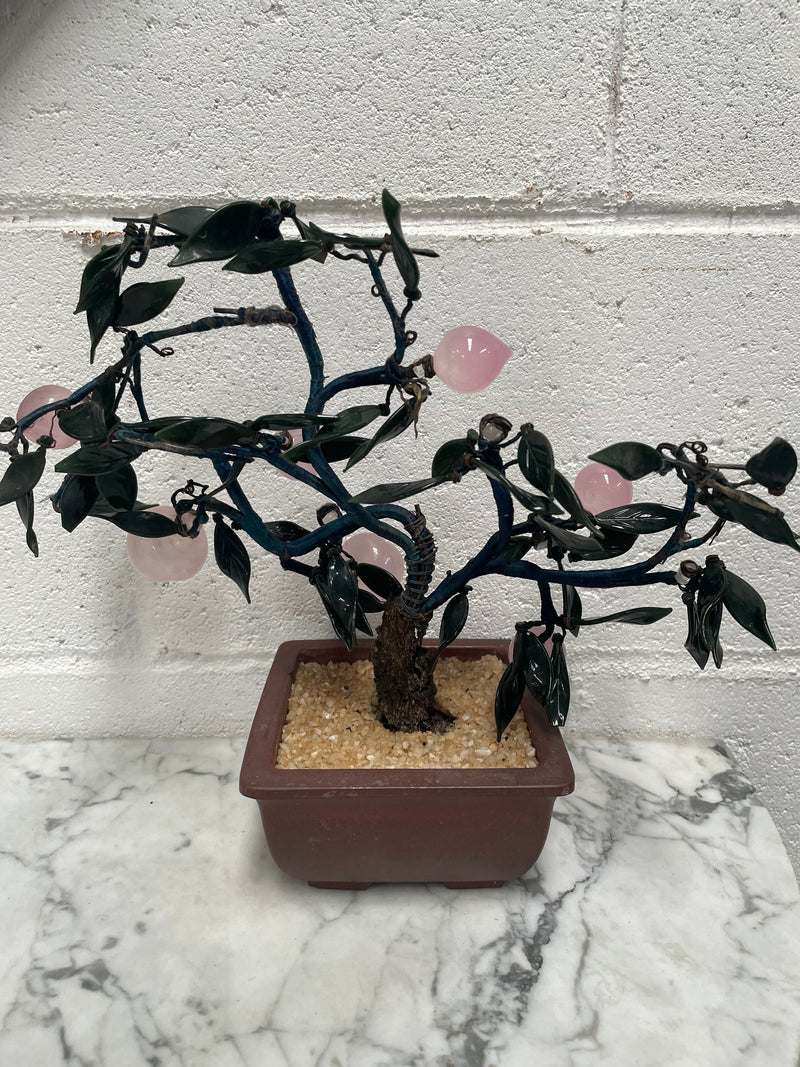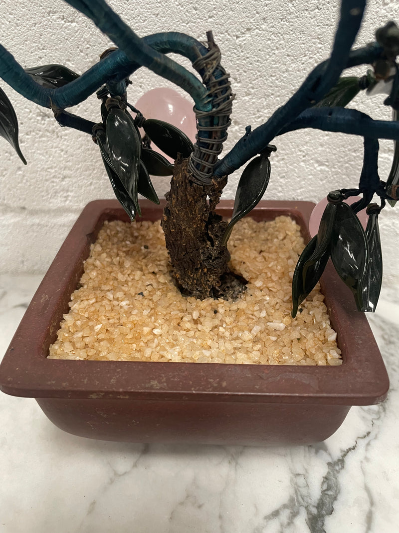 Vintage Glass Cherry Blossom Bonsai Tree in Pot