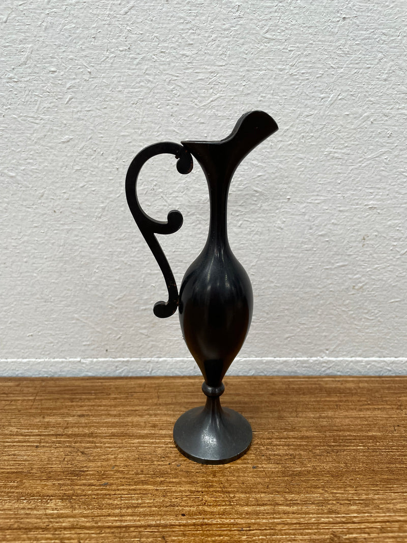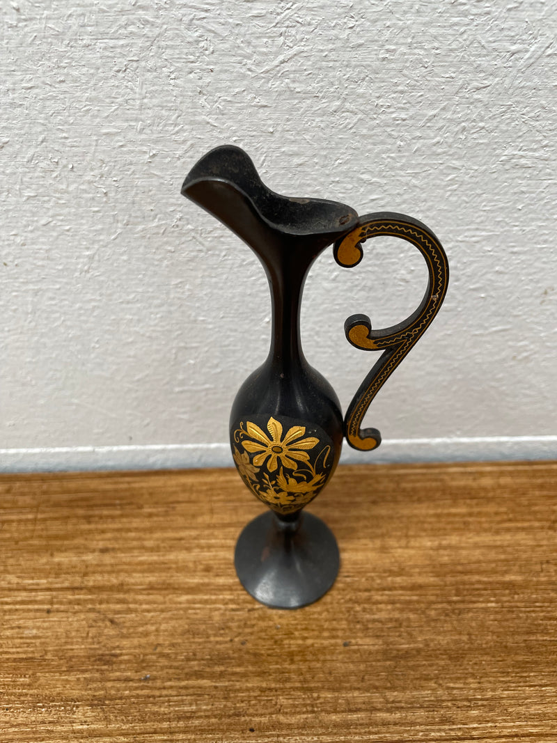 Miniature gold inlaid metal ornament vase with handle, it is in good original condition. Please see photos as they form part of the description.