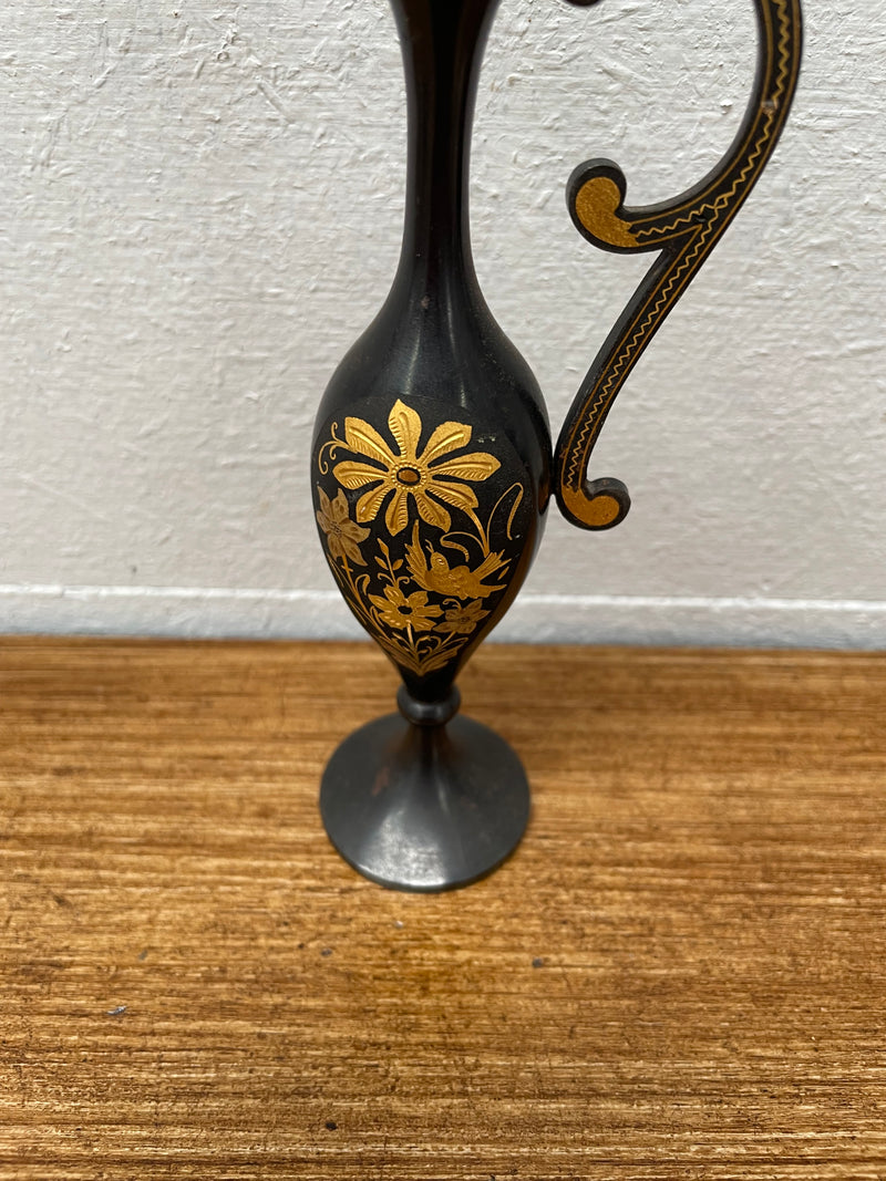 Vintage Gold Inlaid Metal Vase