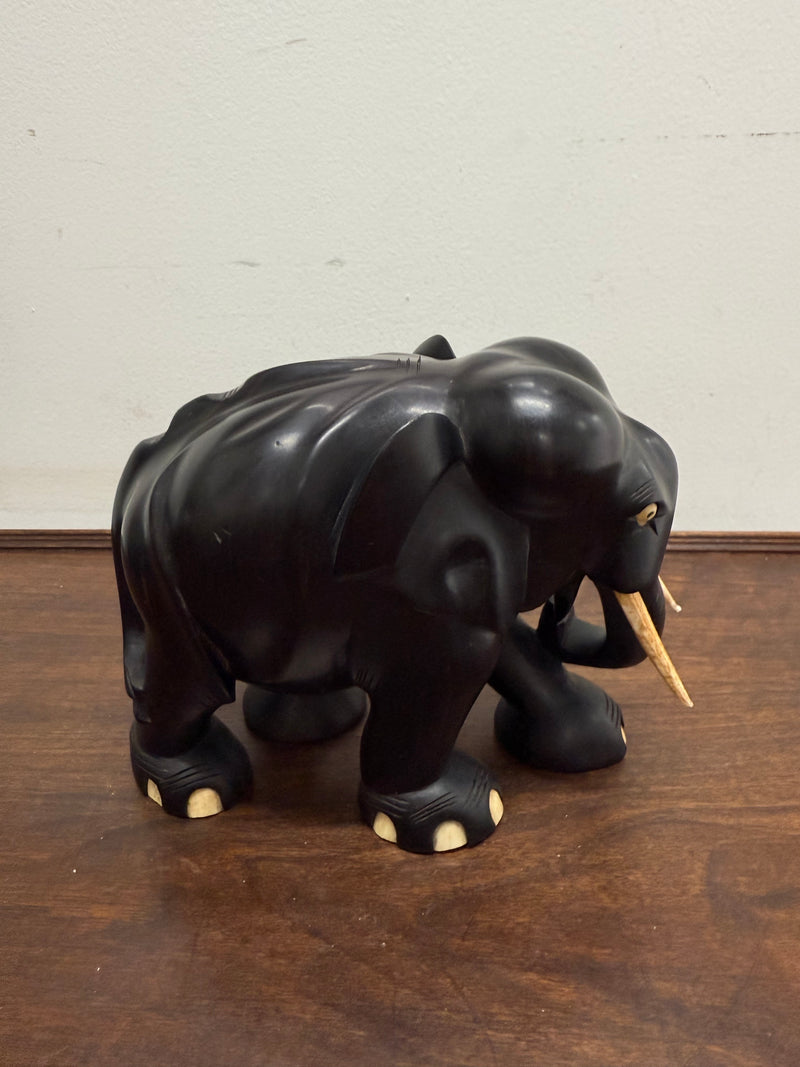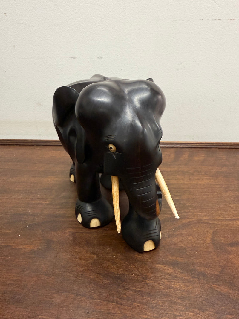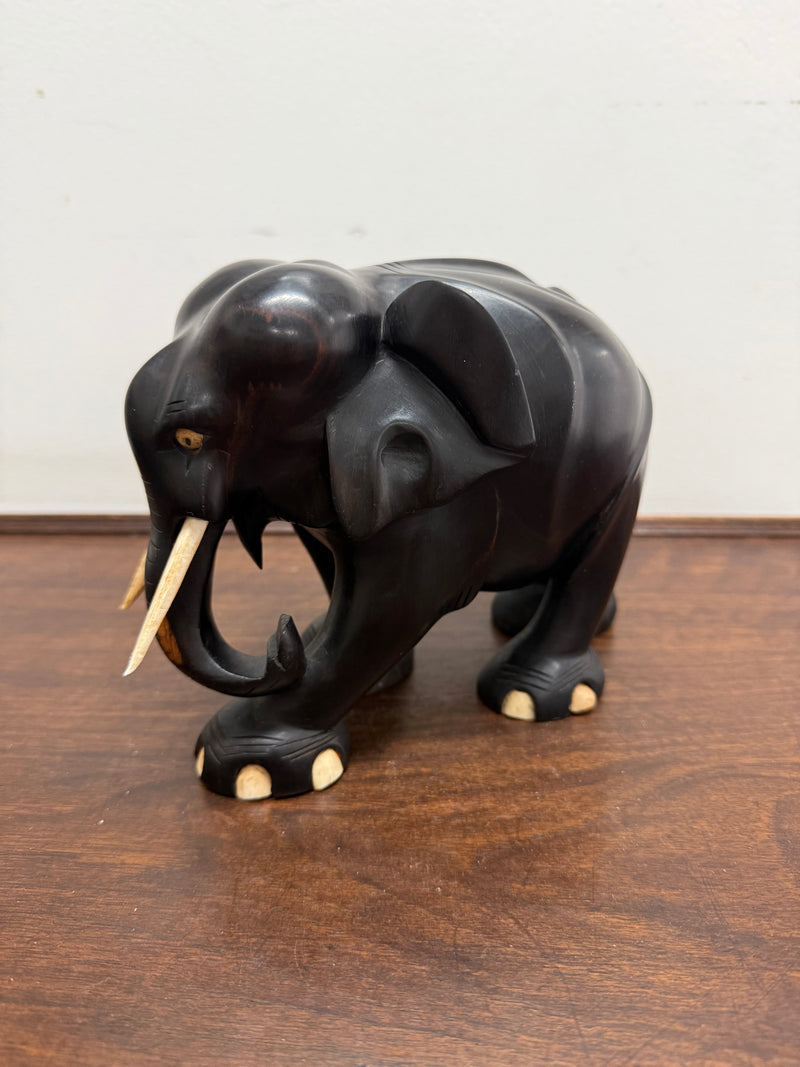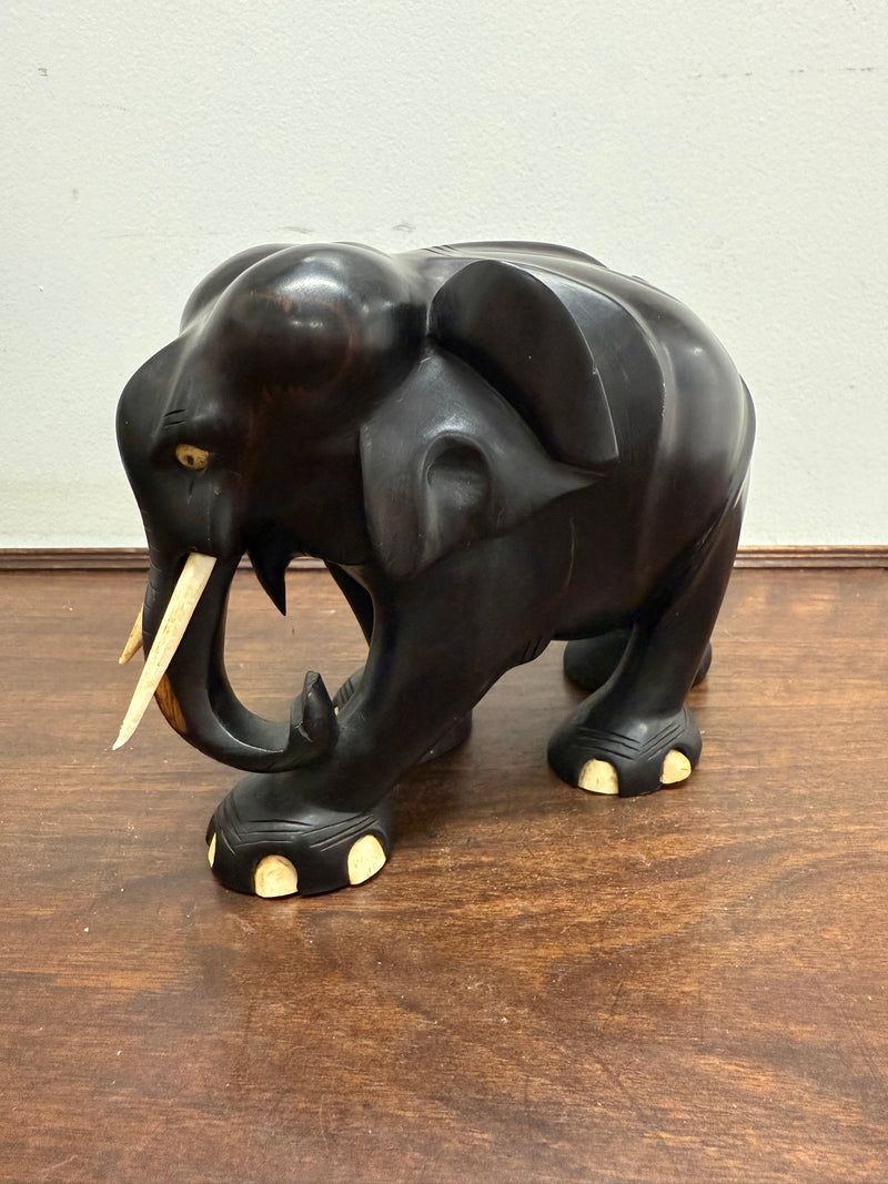 Vintage hand carved ebony and bone Elephant. In very good original condition. Please view photos as they help to form part of the description and condition.