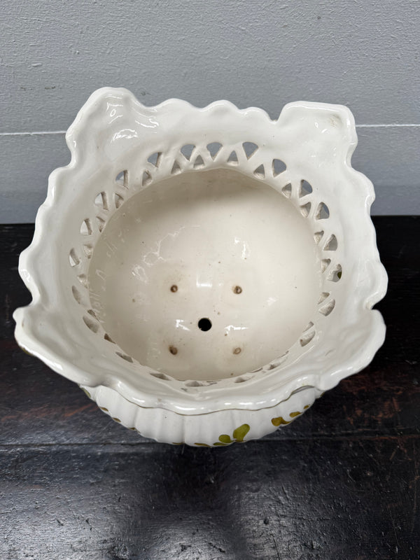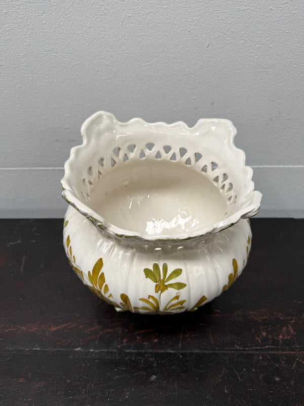 Vintage hand painted Majolica Jardinere. Floral pattern with beautiful greens with a white background. In good original condition. Please view photos as they help to form part of the description and condition.