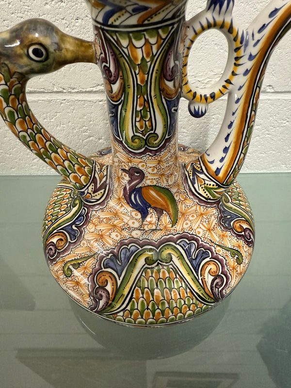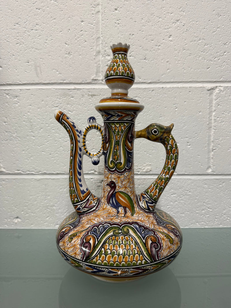Stunning vintage hand painted & signed Portugese decanter with a bird handle. In good original condition. Please see photos as they form part of the description.