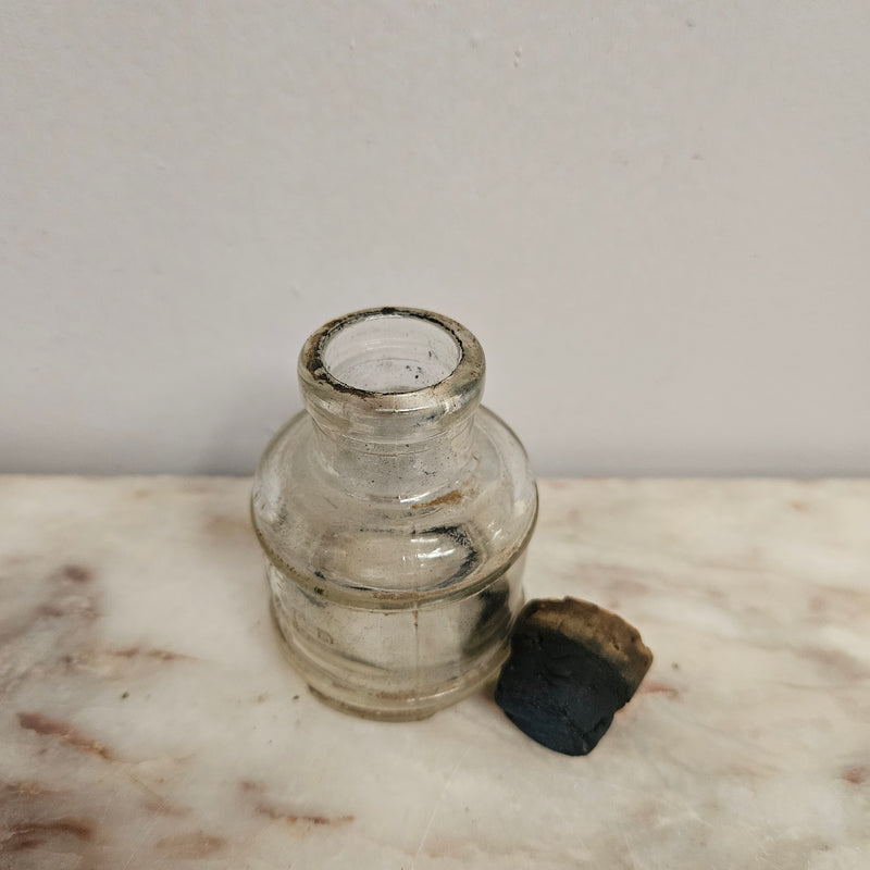 Vintage clear glass Angus & Co ink bottle with stopper, it is in good original condition with some wear. Please see photos as they form part of the description.