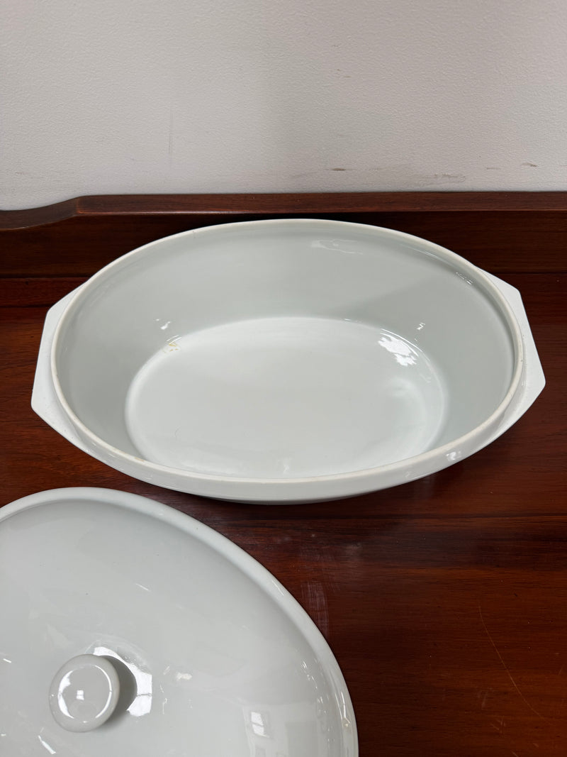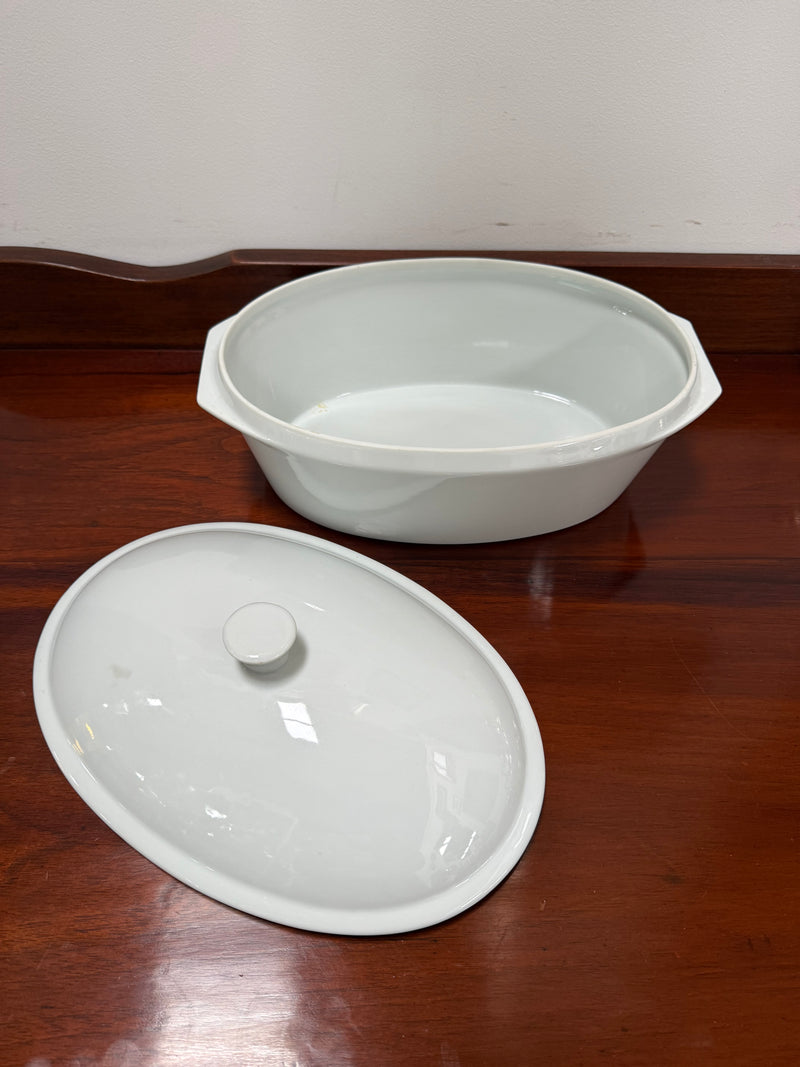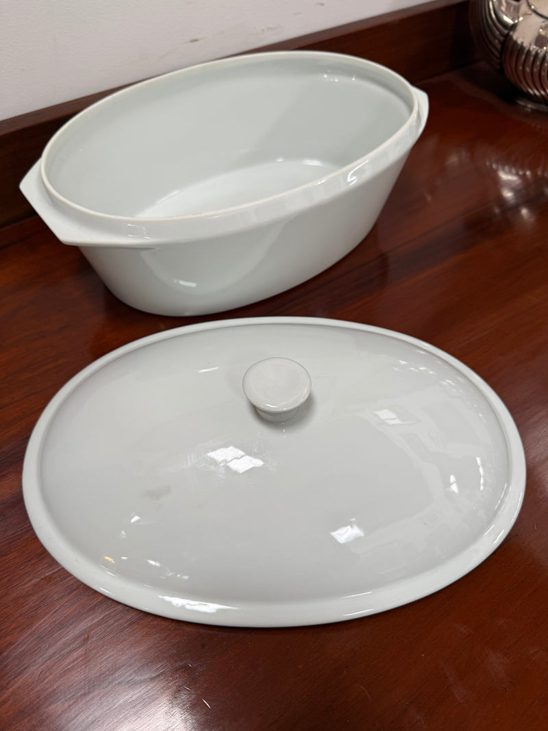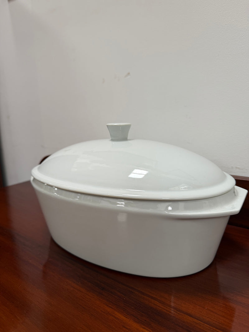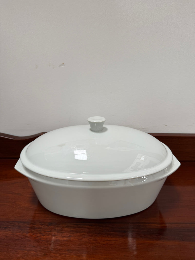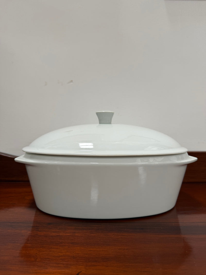 Vintage Le Creuset white stoneware covered casserole. In good original condition. Please see photos as they form part of the description.
