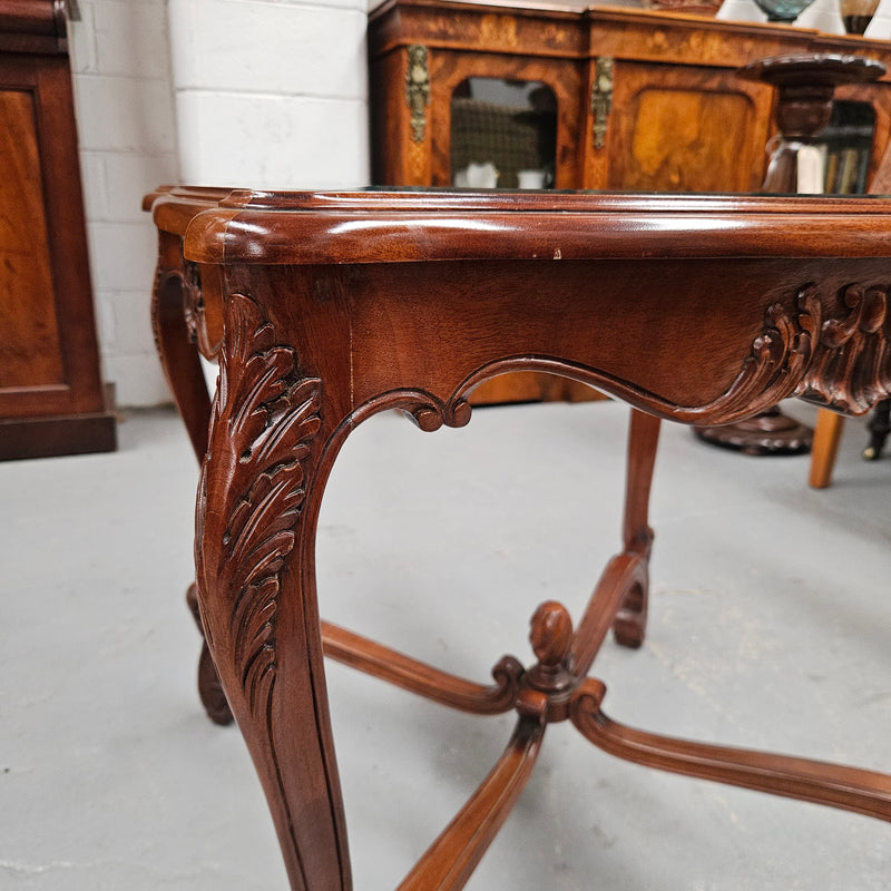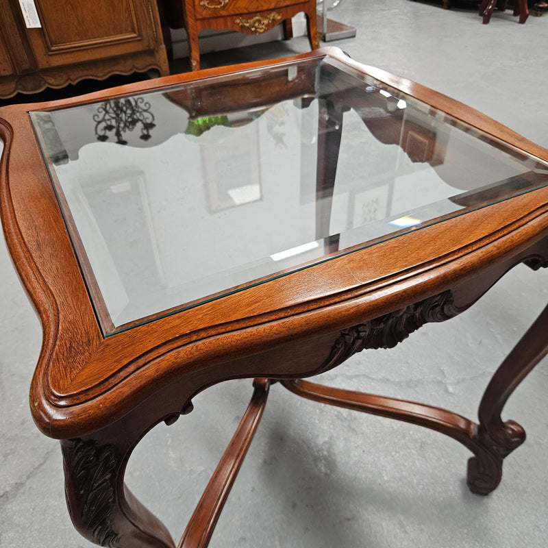 Vintage Mahogany Glass Top Coffee / Side Table Rococo Style