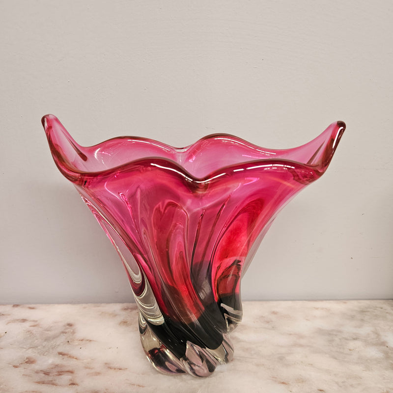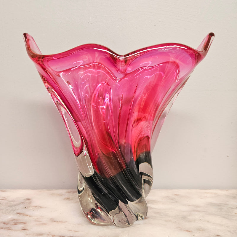 Ruby and crystal vintage Murano style vase, it is in good original condition. Please see photos as they form part of the description.
