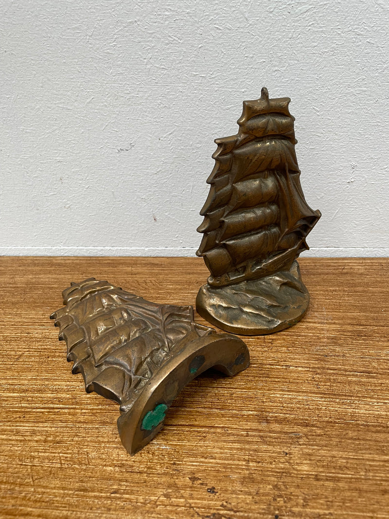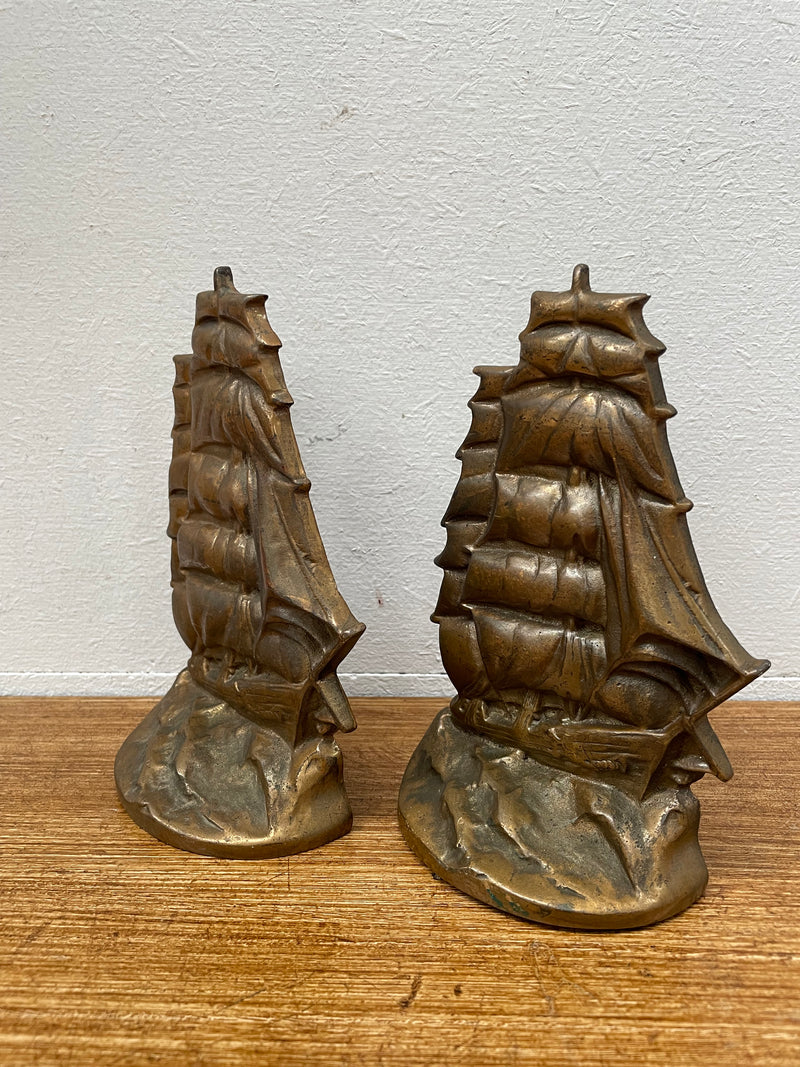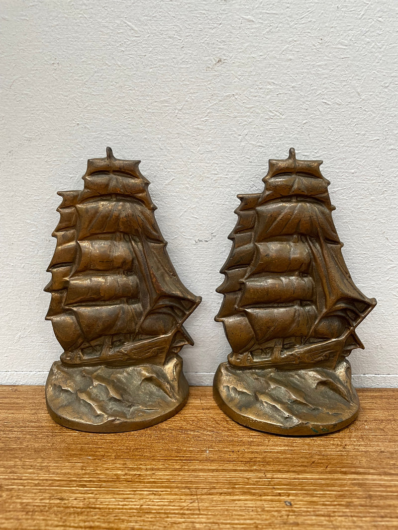 Vintage Pair Bronze Ship Bookends