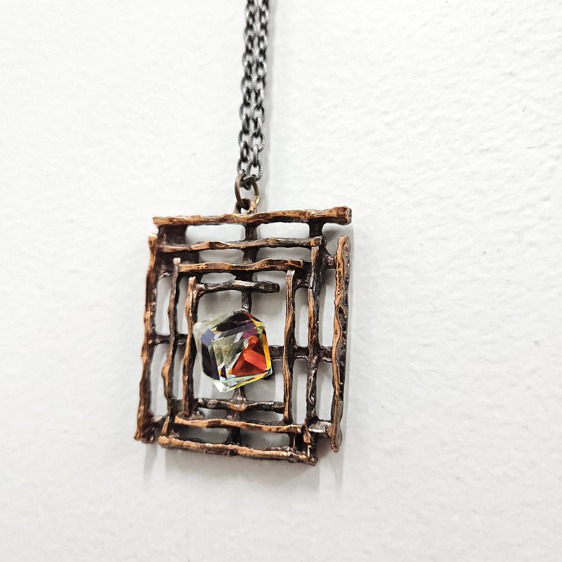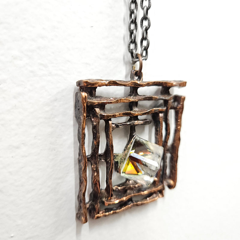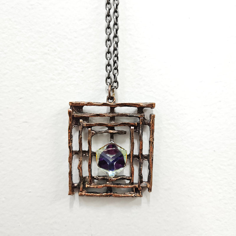 Lovely vintage pendent and chain, the pendent has a iridescent cube in the centre. It is in good original condition. Please see photos as they form part of the description.