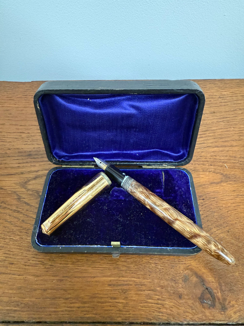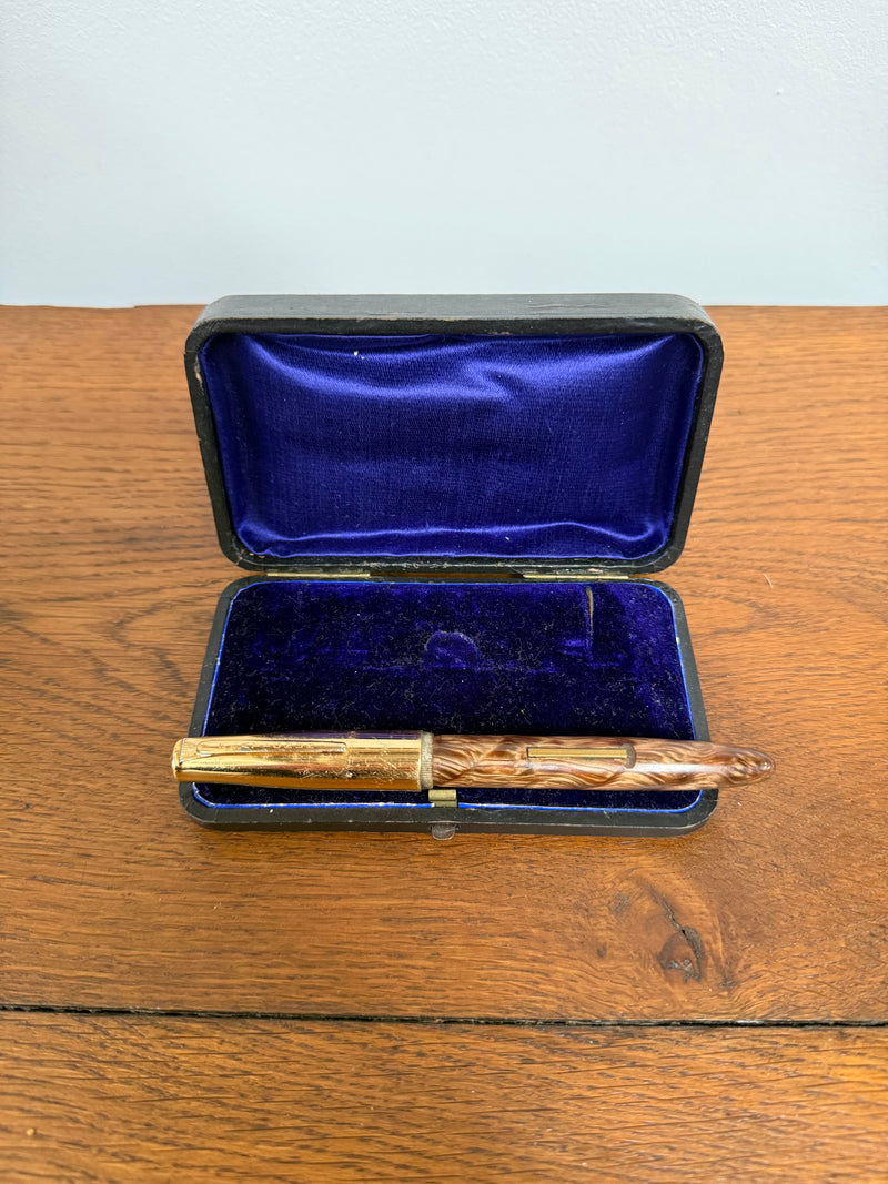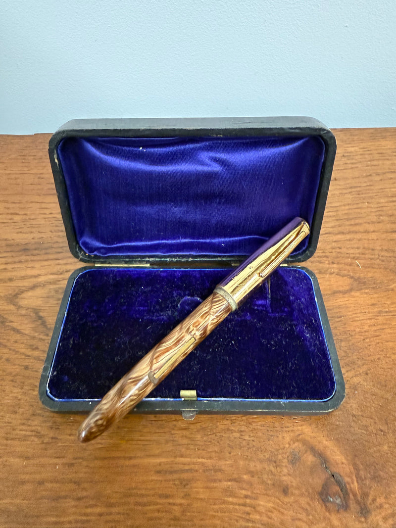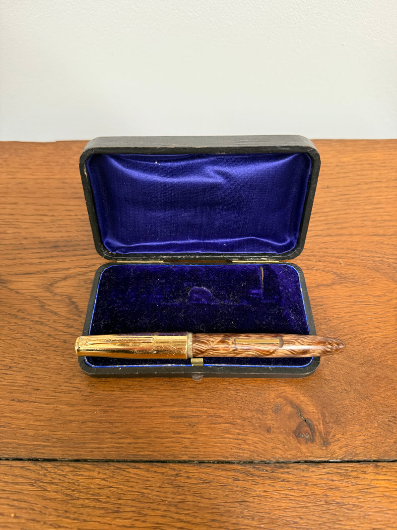 Vintage Platignum Bijou Fountain Pen Circa: 1940's. Gold plated nib. In good original condition. Please see photos as they form part of the description and condition.