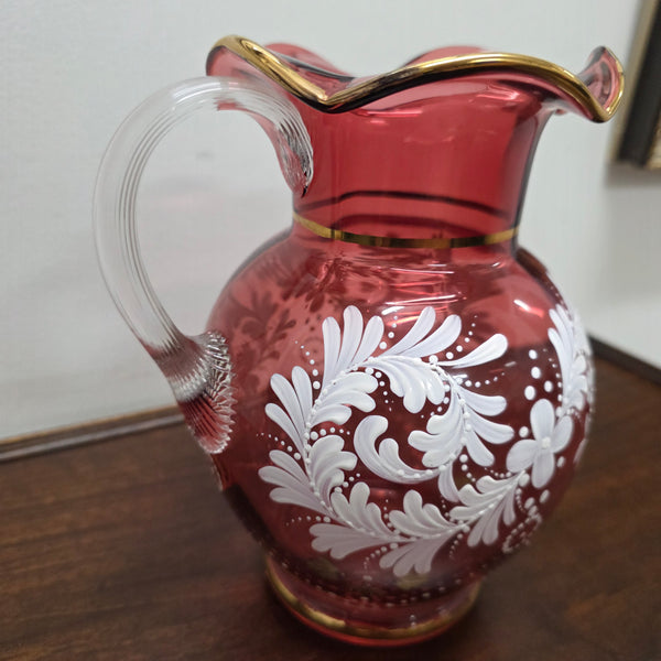 Vintage Ruby & Enamel Painted Glass Jug