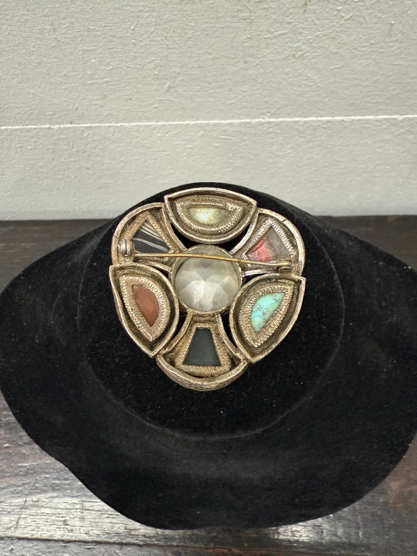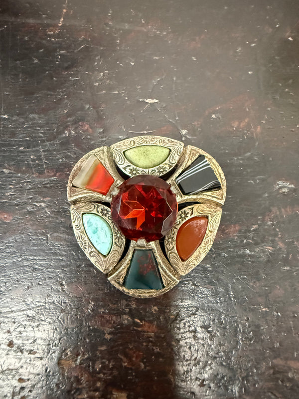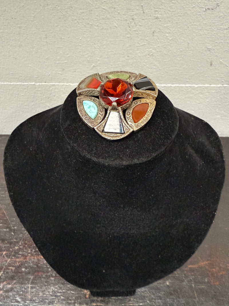 Vintage Scottish/Celtic Amber & Agate Style Glass Brooch