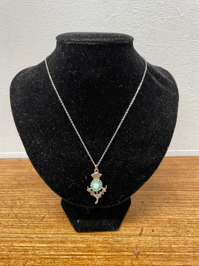 Vintage Scottish Pewter Thistle Pendant & Chain