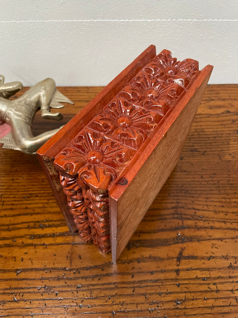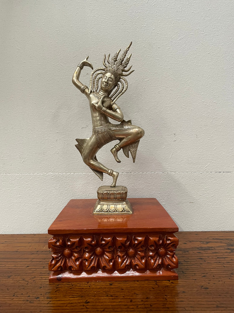 Stunning vintage Apsara / Heavenly Nymph / Celestial Dancer silvered bronze statue on a carved wooden base.