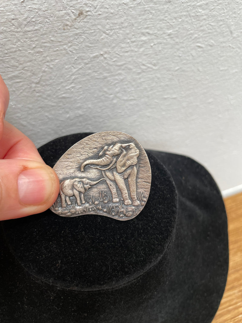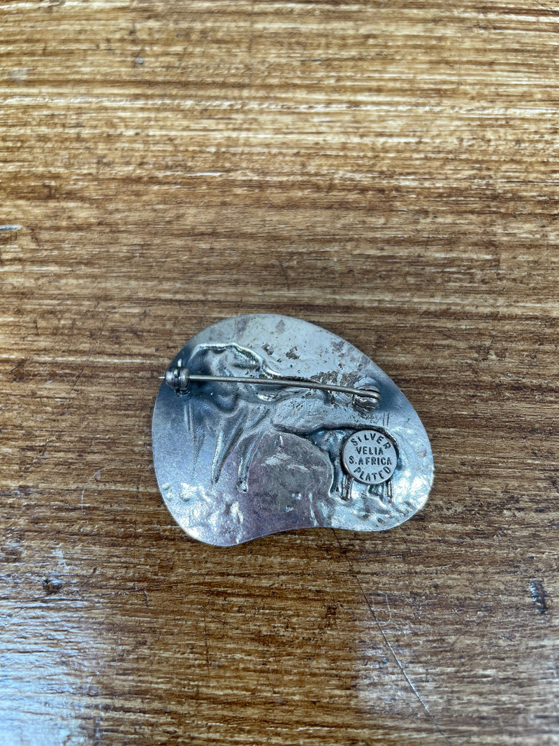 Vintage South African Elephant Brooch Signed "Velia Silver Plated"