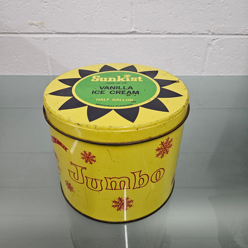 Jumbo Sunkist Vintage vanilla ice cream tin, it is in good original condition with some signs of age. Please see photos as they form part of the description.