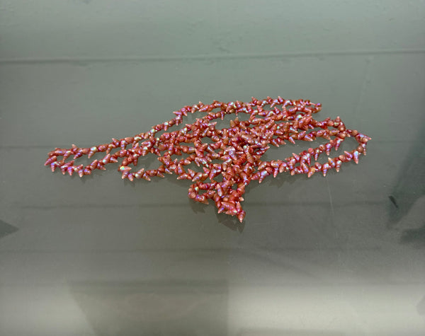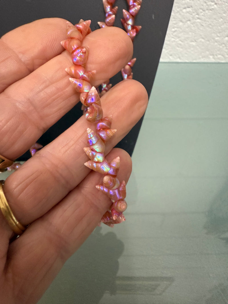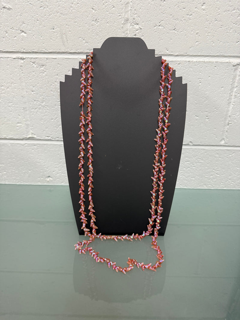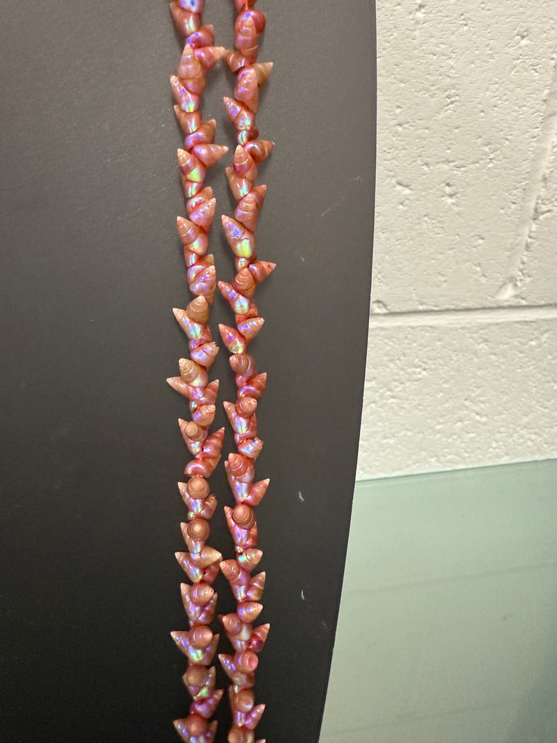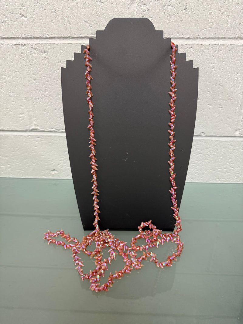 Vintage Tasmanian Aboriginal pink shell maireener iridescent necklace. Length 176cm. In good original condition. Please see photos as they form part of the description.