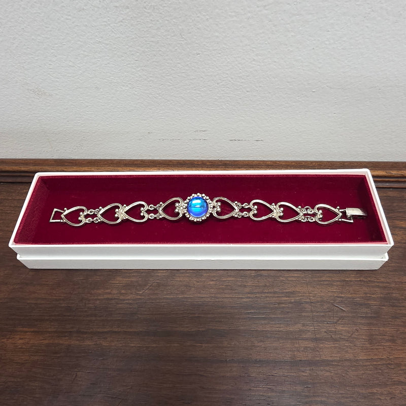 Very attractive "Tiffany" silver coloured costume bracelet with central blue glass. In good original condition. Please see photos as they form part of the description.