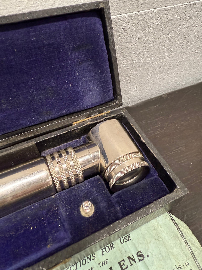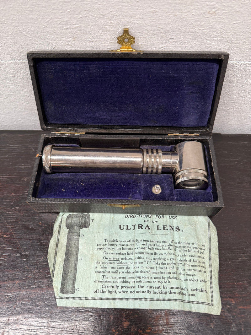 Vintage ultra lens magnifying optical lens instrument ears / eyes etc. Boxed, instructions and working. In good original condition. Please see photos as they form part of the description.