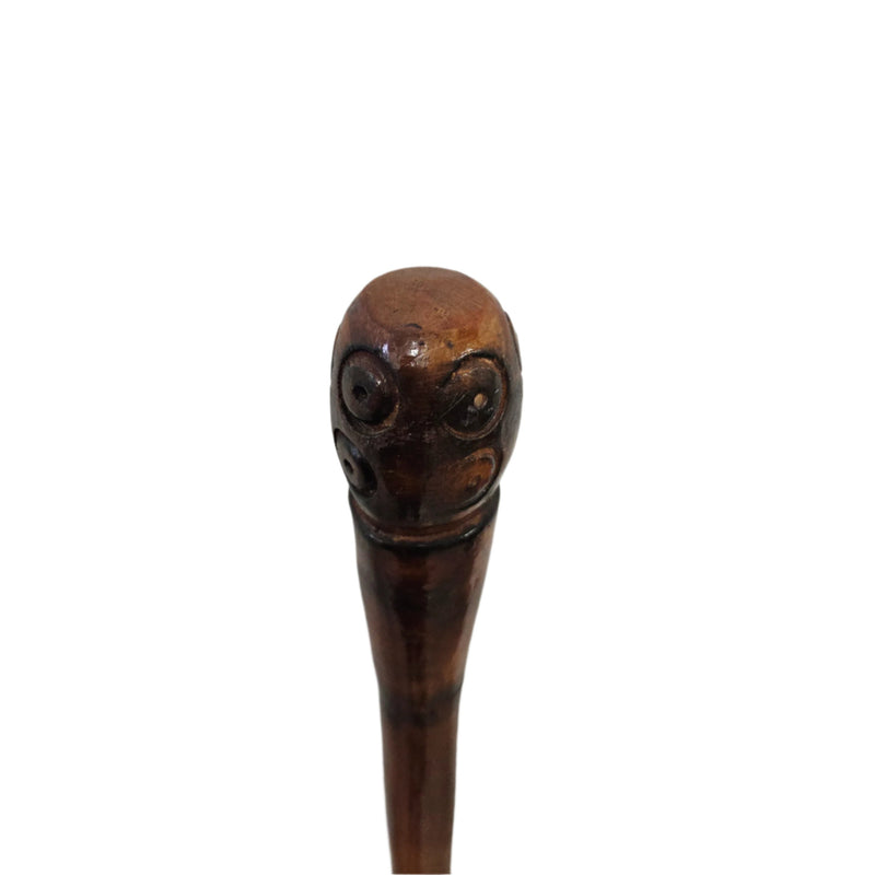 Vintage hand carved wooden walking cane, it has some carvings to the head. It is in good original condition. Please see photos as they form part of the description and condition. Please note this item is one of two, sold separately.
