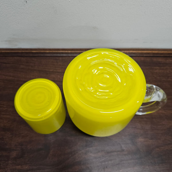 Vintage Yellow Blown Glass Jug and Glass Cup