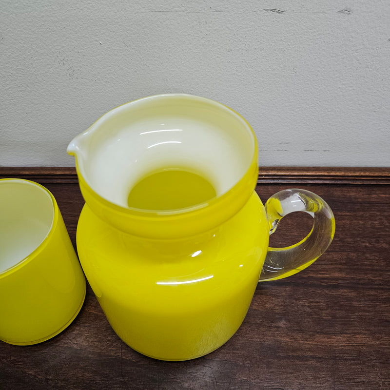 Lovely vintage cased yellow blown glass jug & glass cup. It is in good original condition. Please see photos as they form part of the description.