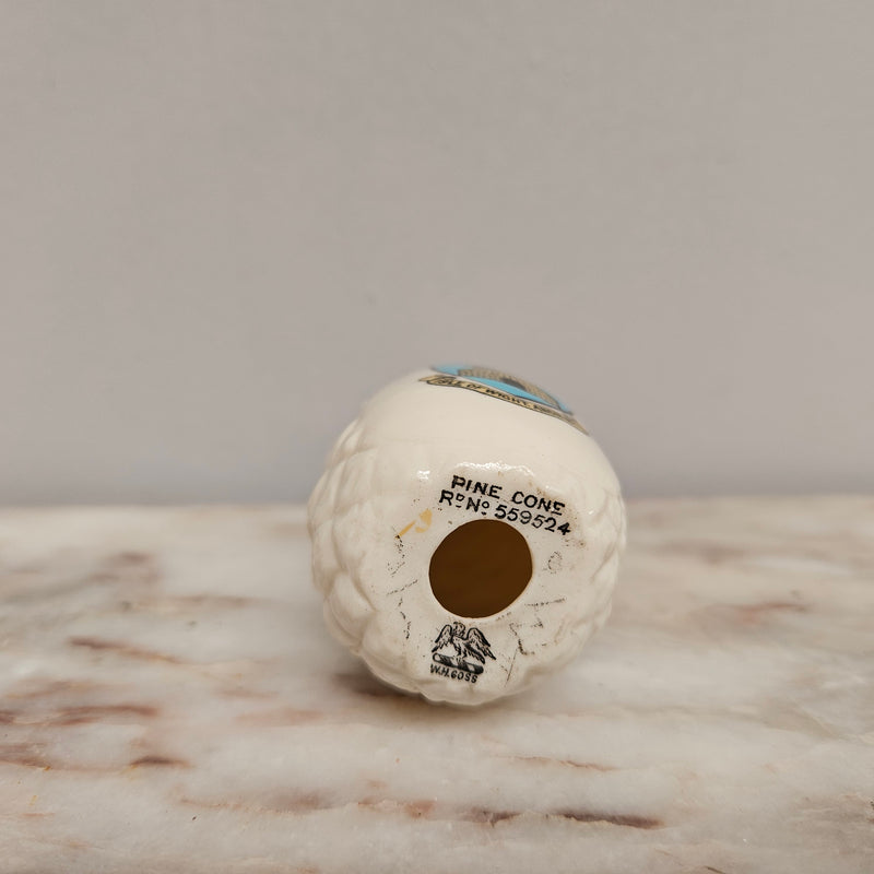 W.H.Goss Crested China Pinecone with an Isle of Wight. Ancient image on the front and makers mark to the base, it is in good original condition. Please see photos as they form part of the description.
