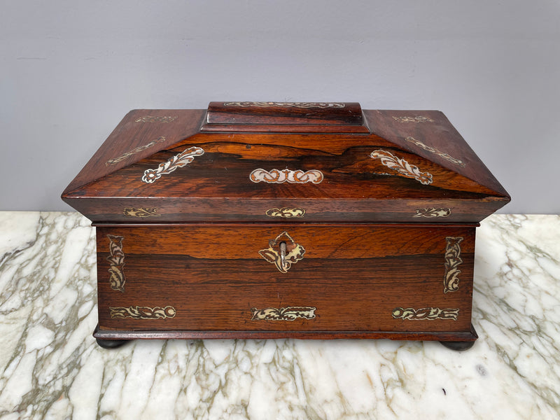 William IV (1835) Rosewood Tea Caddy with MOP Inlay.