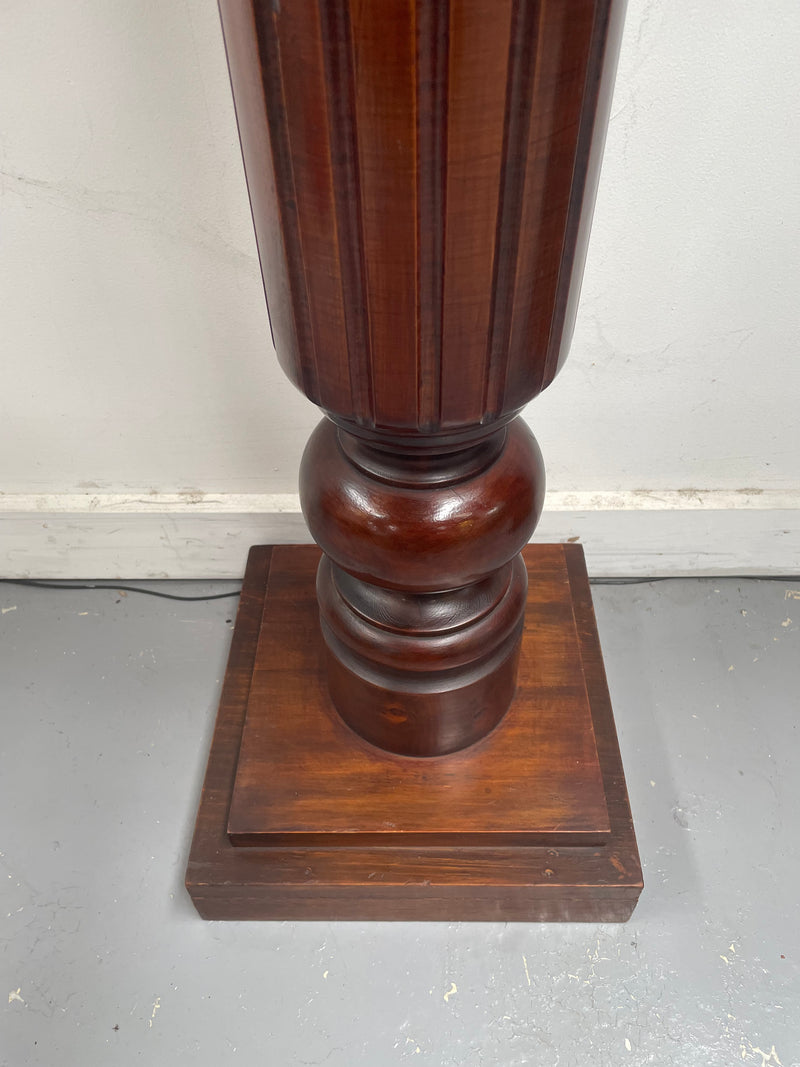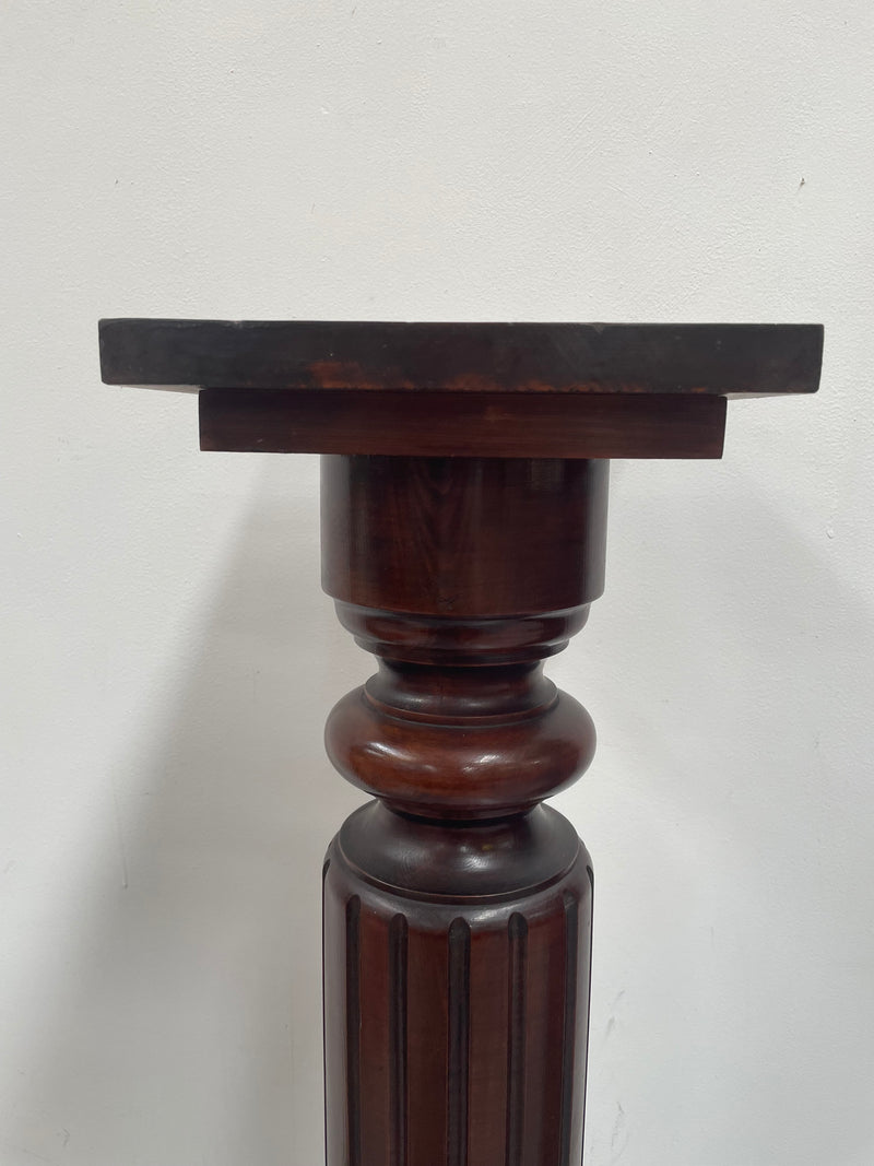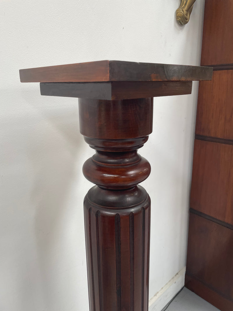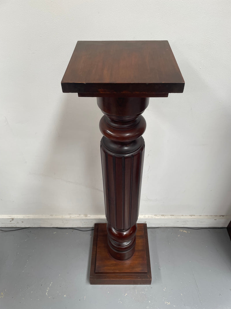 Charming solid Mahogany fluted column pedestal. Sourced locally and in good original condition. Please view photos as they help to form part of the description and condition.